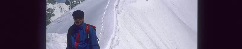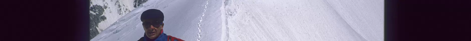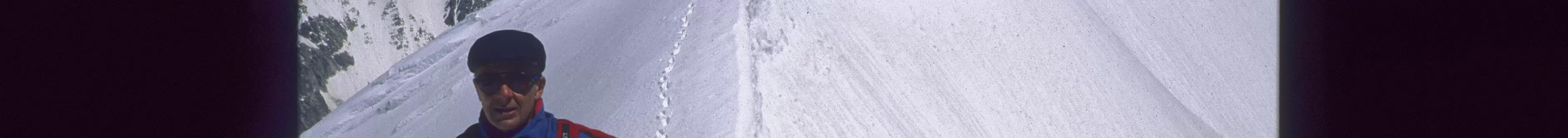 Départ à 8h de la Pointe Helbronner. Les arêtes effilées de la partie initiale des arêtes de Rochefort, 4010 m.
