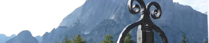 La station de Sella Nevea est dans la vallée et les sommets frontaliers avec le Mont Kanin à droite.