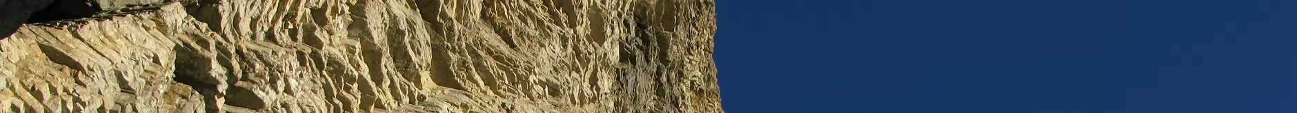 Le dièdre vertical sur 10 mètres, puis en oblique sur la gauche franchir un long bombé pour gagner le relais sous le toit. La seule longueur d’artificiel (A1)…