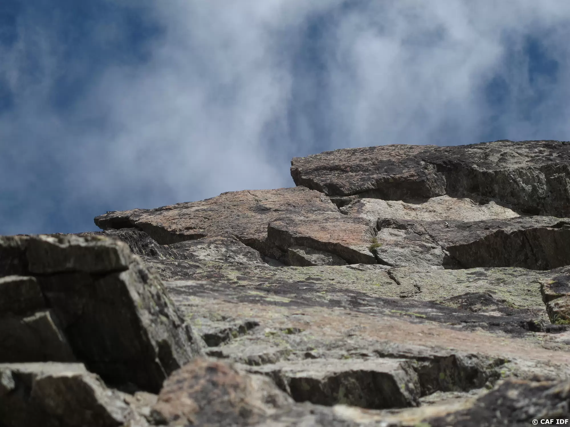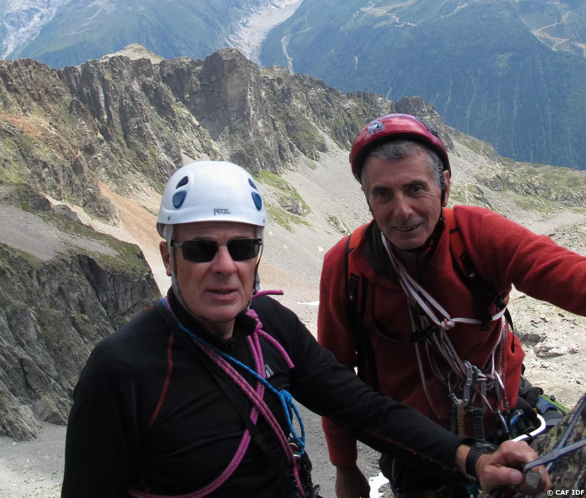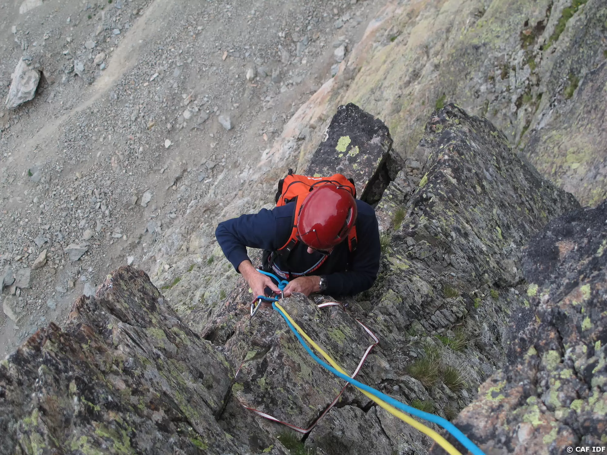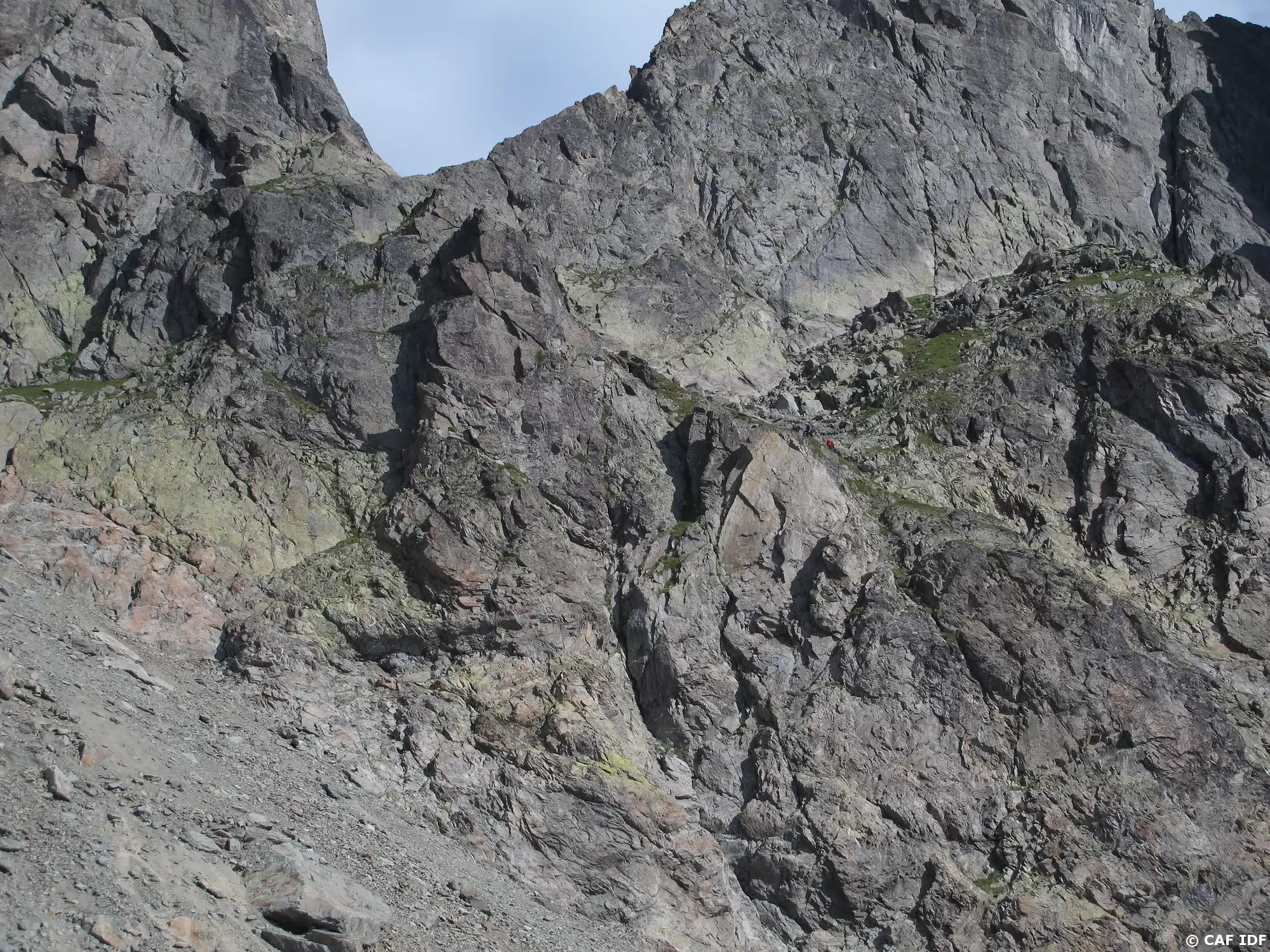 Attention au couloir empierré situé entre les deux grimpeurs.
