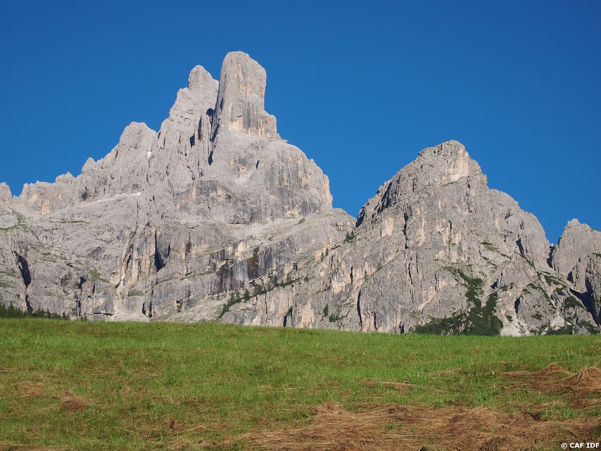 La Torre Venezia, 2337 mètres, parcourue en 2006 par la voie Andrich : TD, 5c max, 350 mètres.