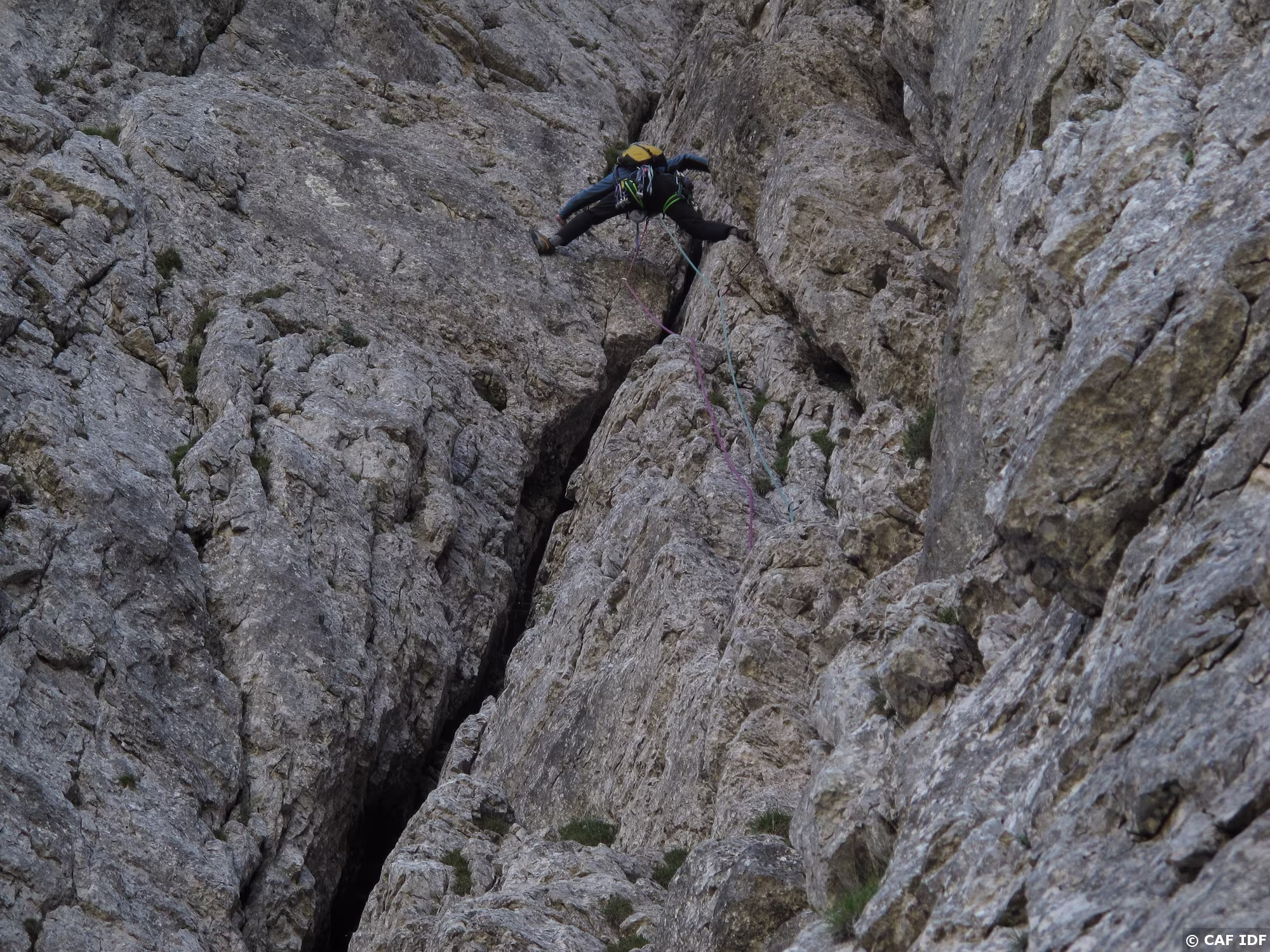 Deuxième longueur en 3/4 de la voie Da Roit.
