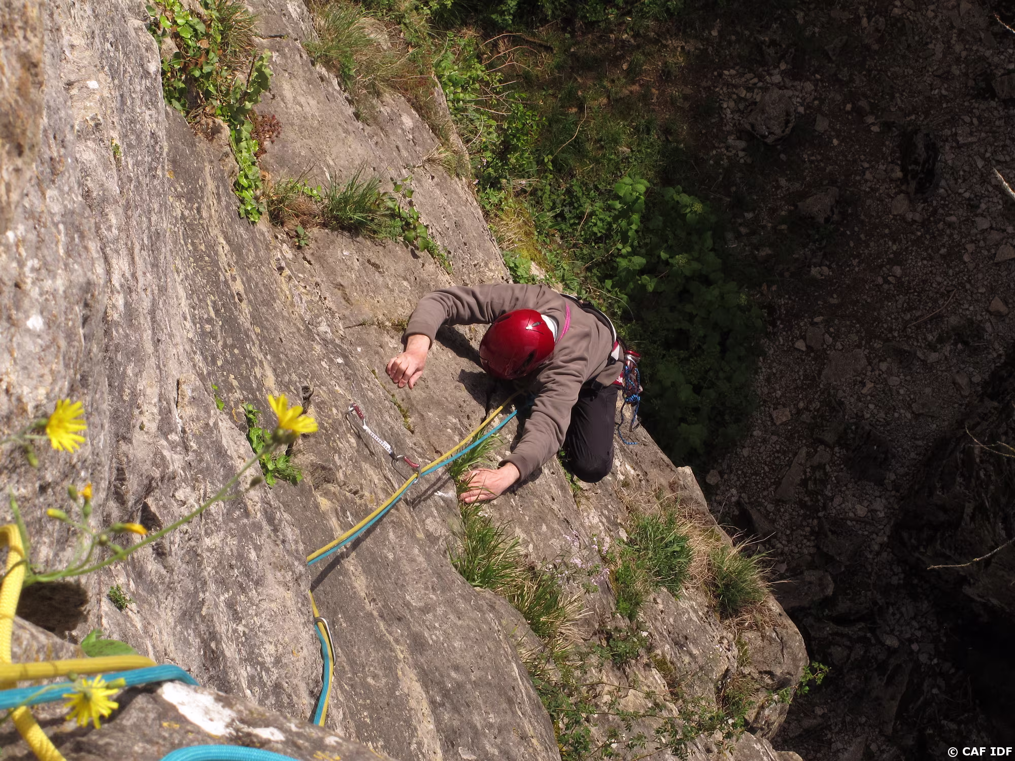 La vire ascendante qui conduit à la courte cheminé amenant à R1.