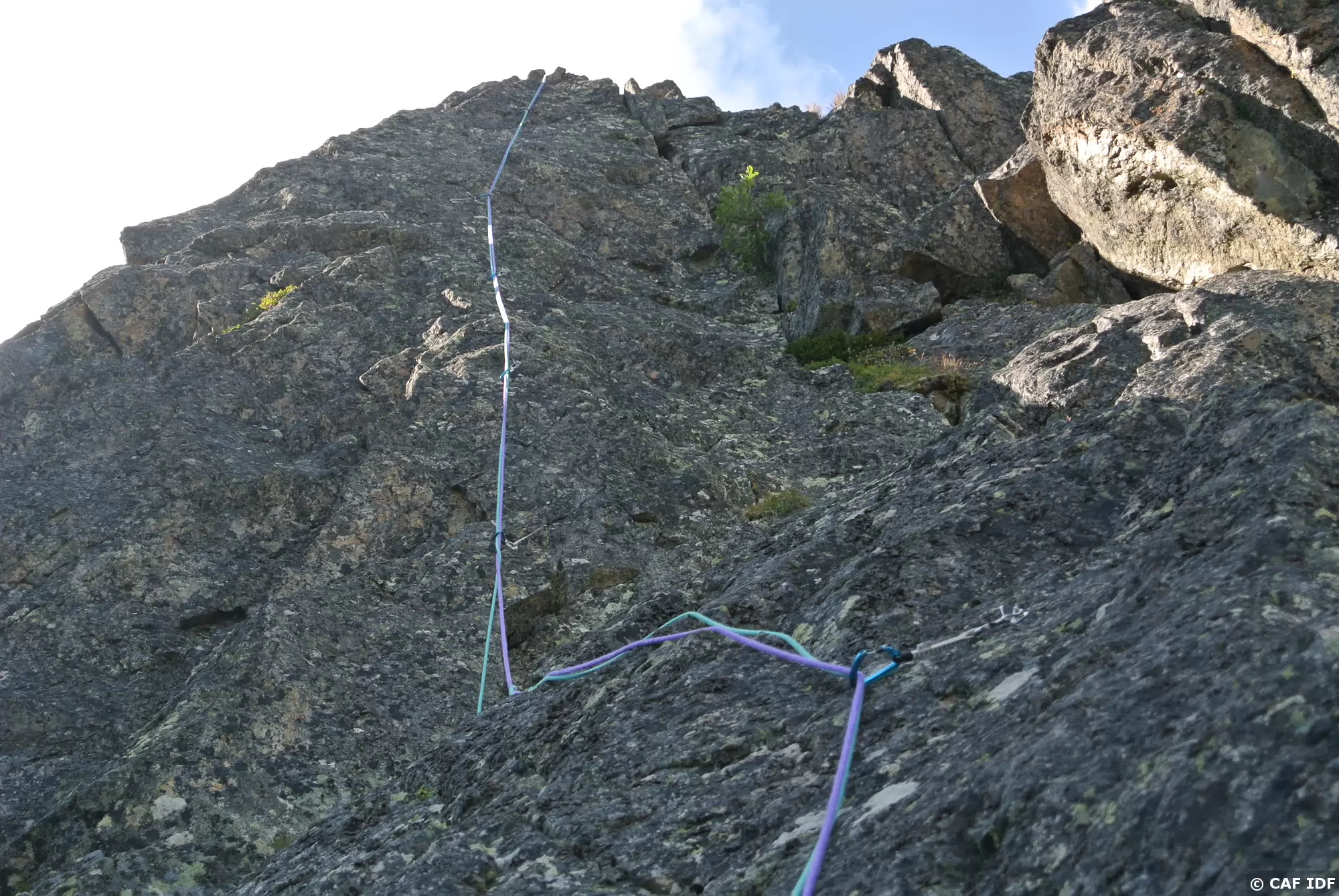 Les premières longueurs – L1 5c, L2 6a, L3 6a - sont humides et glissantes (orage la veille)