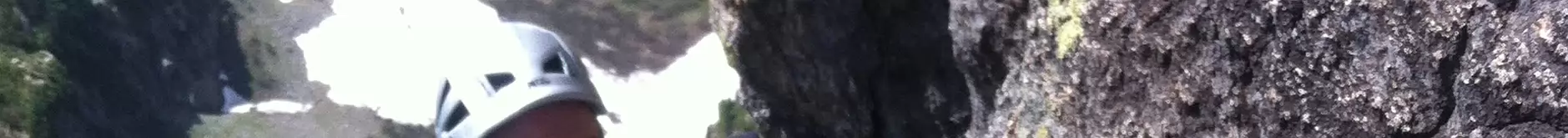 Rappel de 50 mètres de R8 qui mène à R6, la ligne d’escalade suit le dièdre