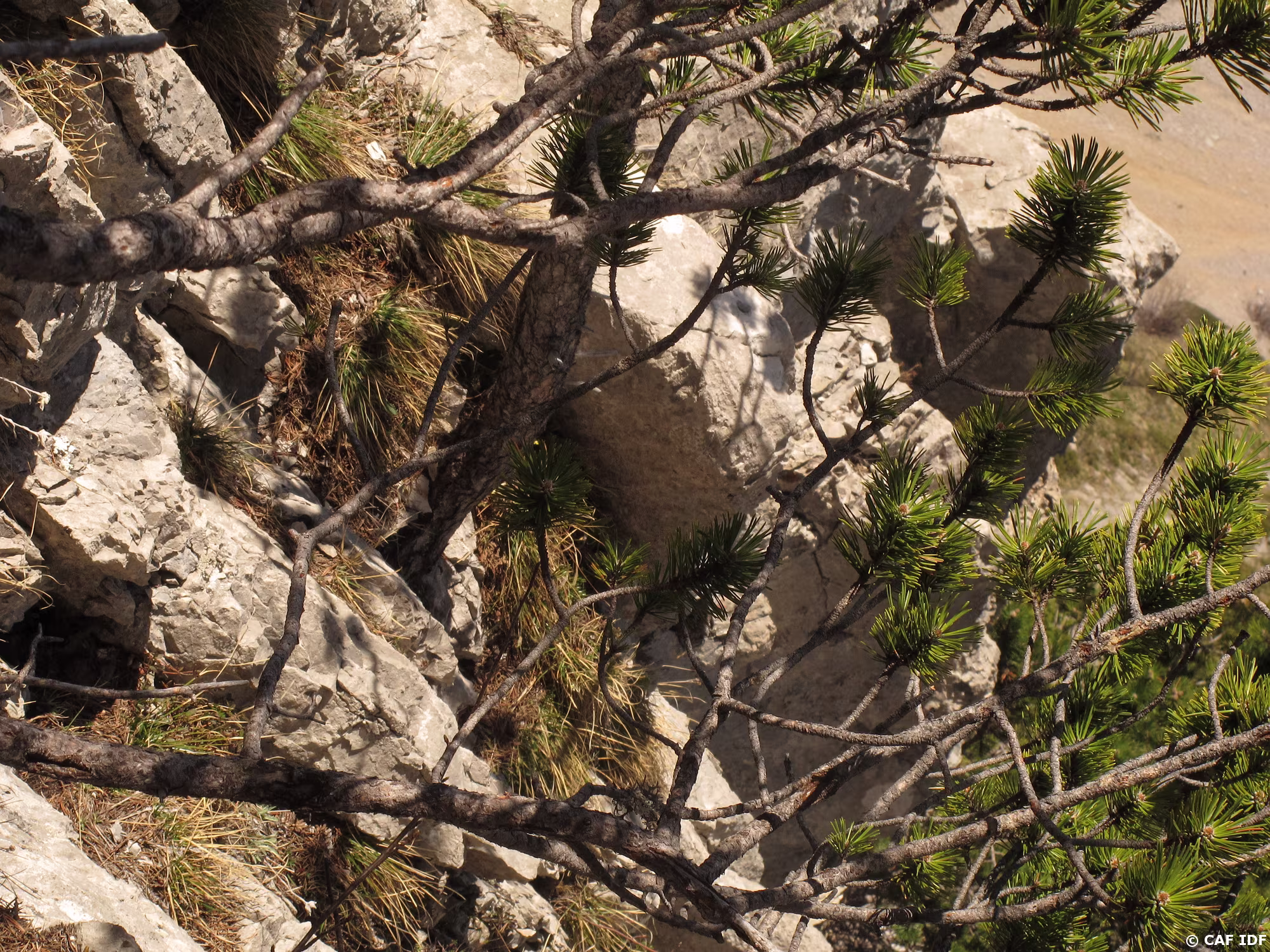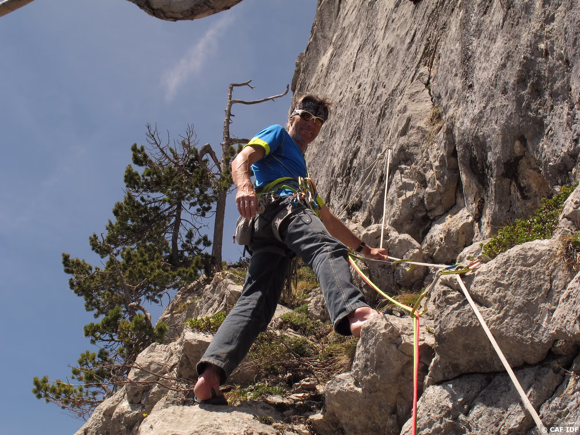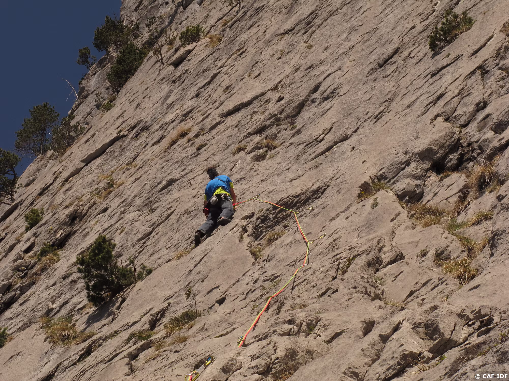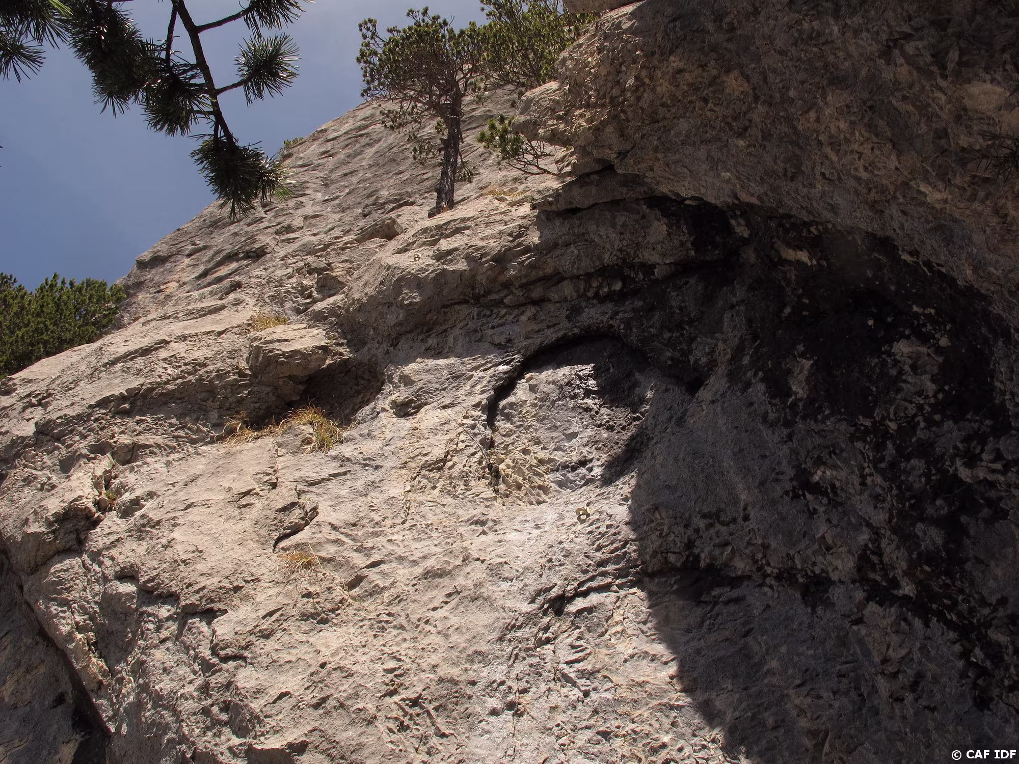 A la sortie du dièdre, l’arbre où certains s’aventurent à installer un relais non obligatoire