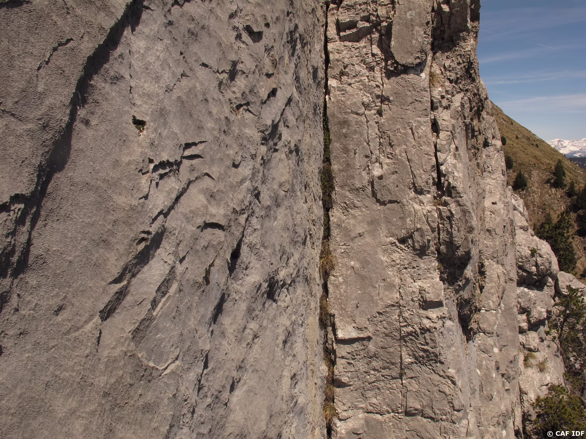 Chercher le spit de cette voie en 7a/7b tracée à gauche de Bisson Futé