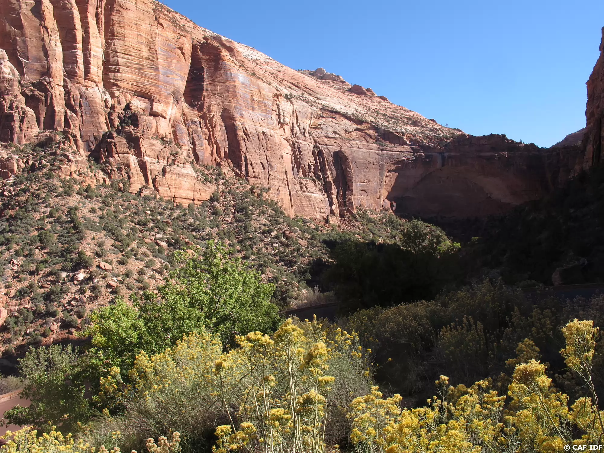 002 Peu avant l’entrée du Mont Carmel tunnel, les falaises de grès rouge Navajo