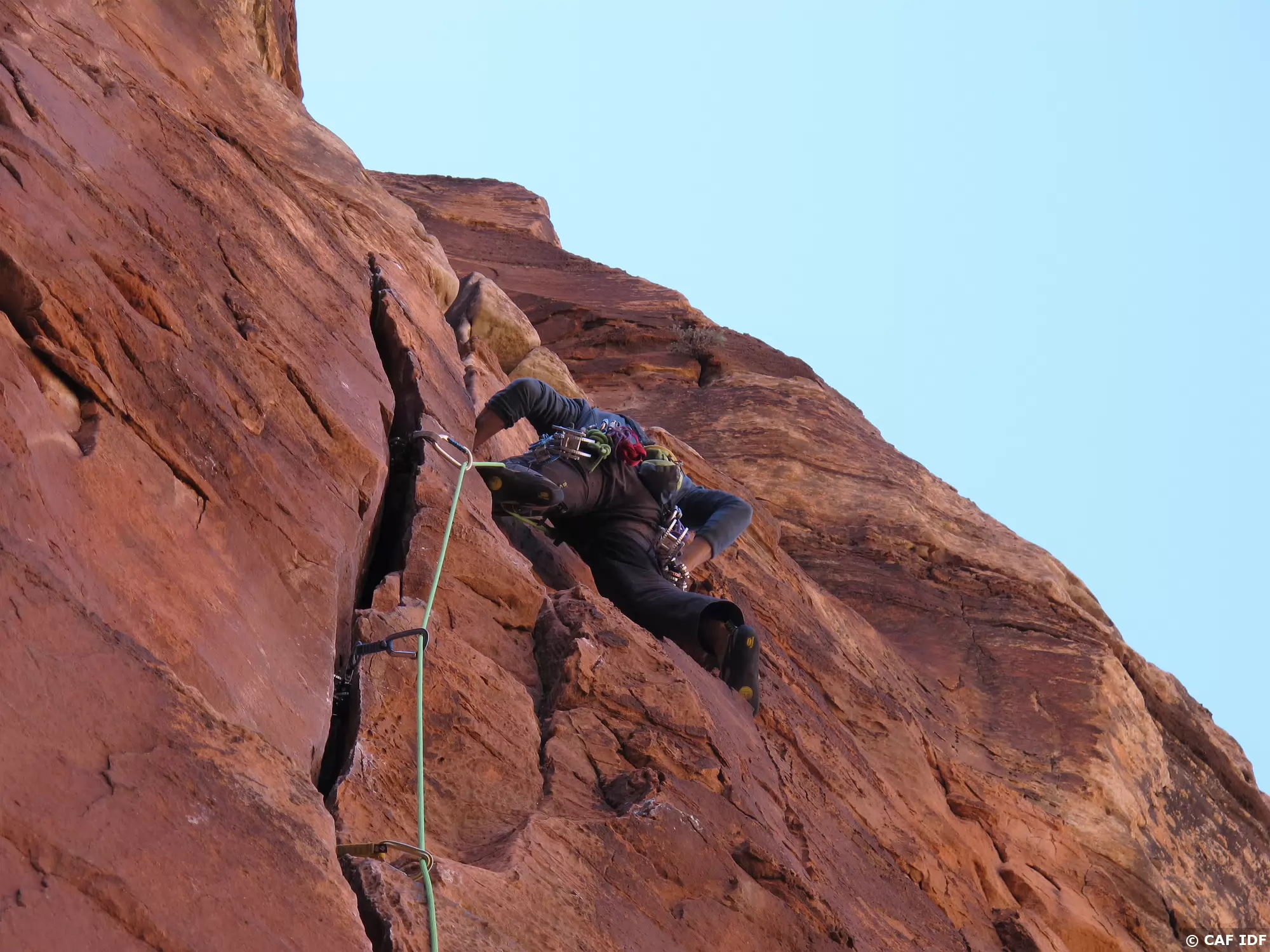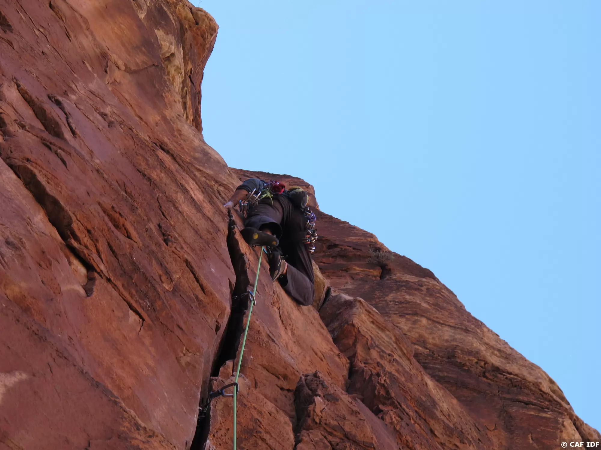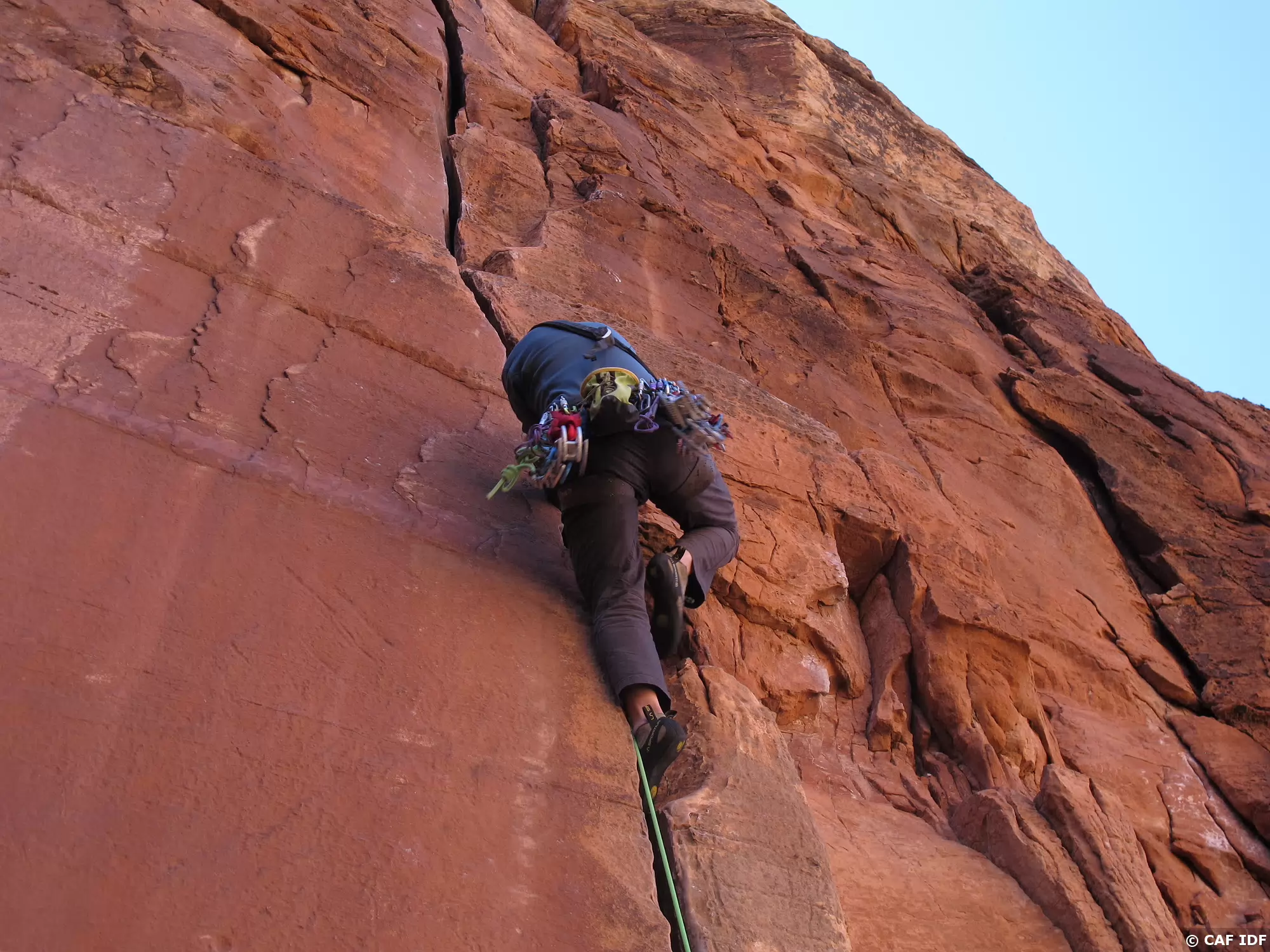 Notez les coinceurs mécaniques mis en place dans cette longueur à équiper