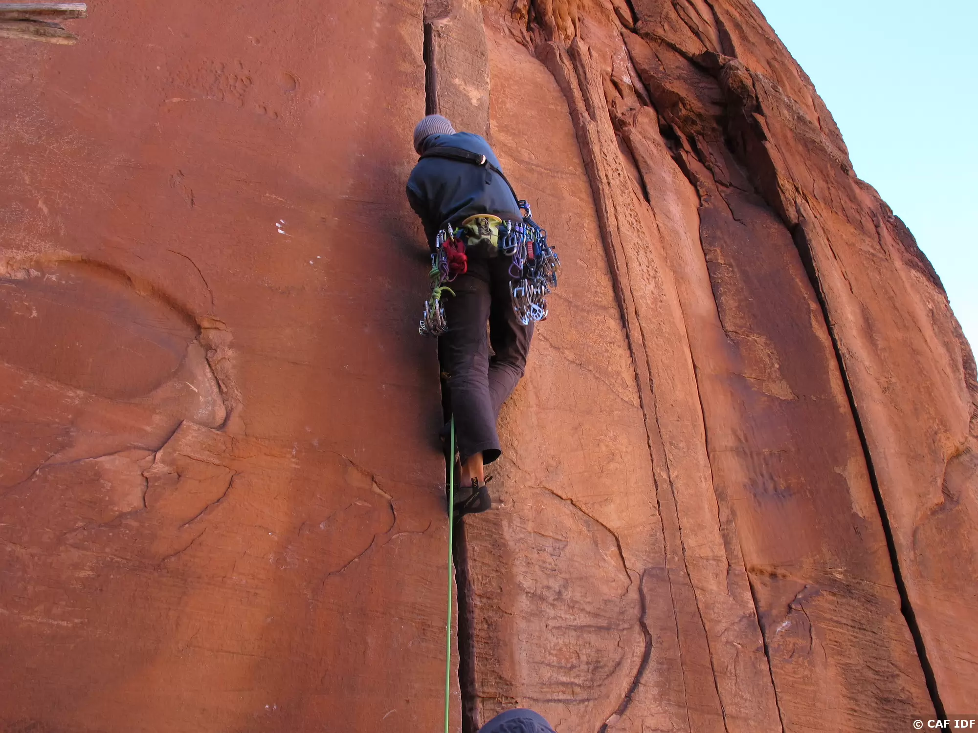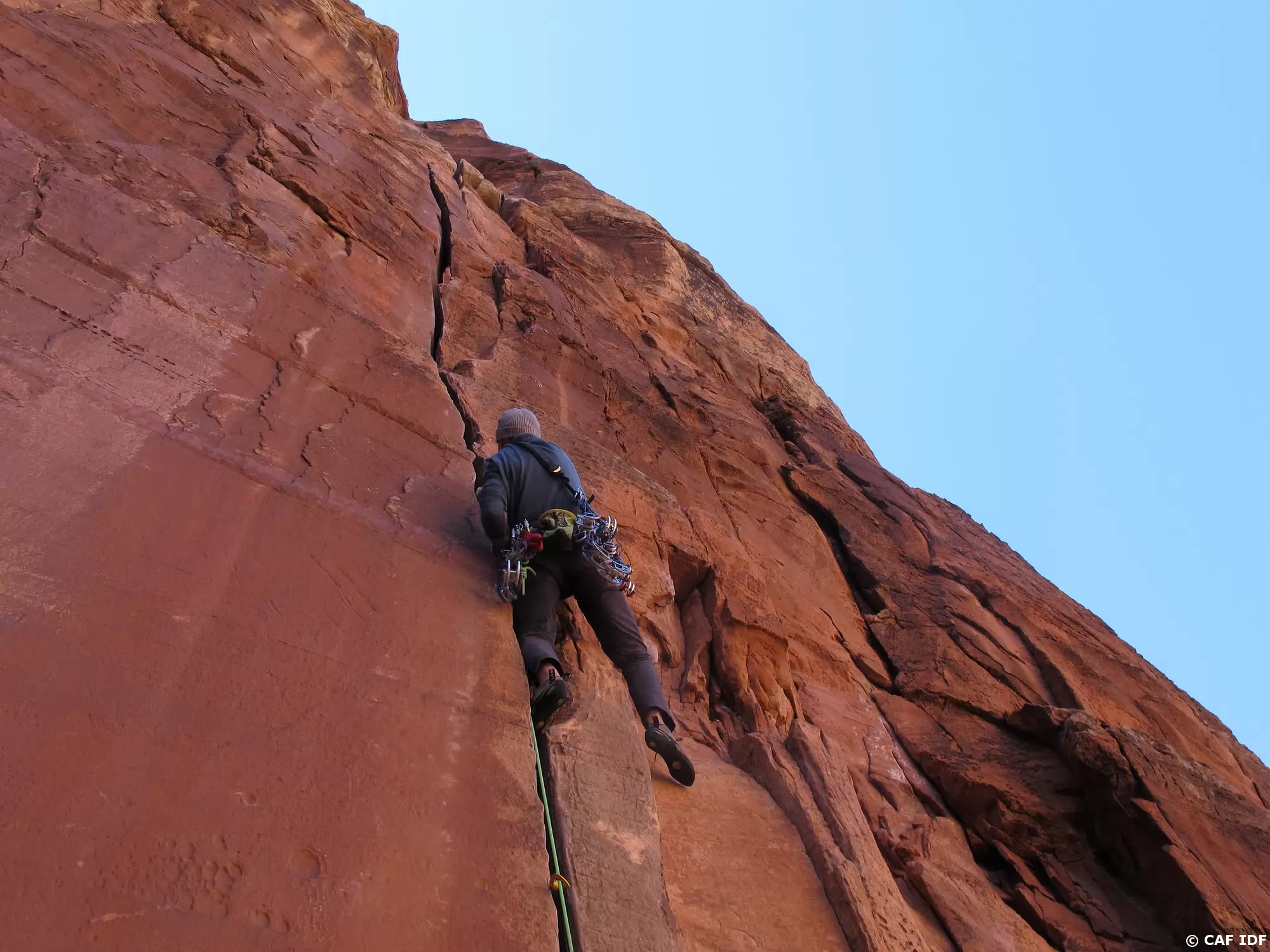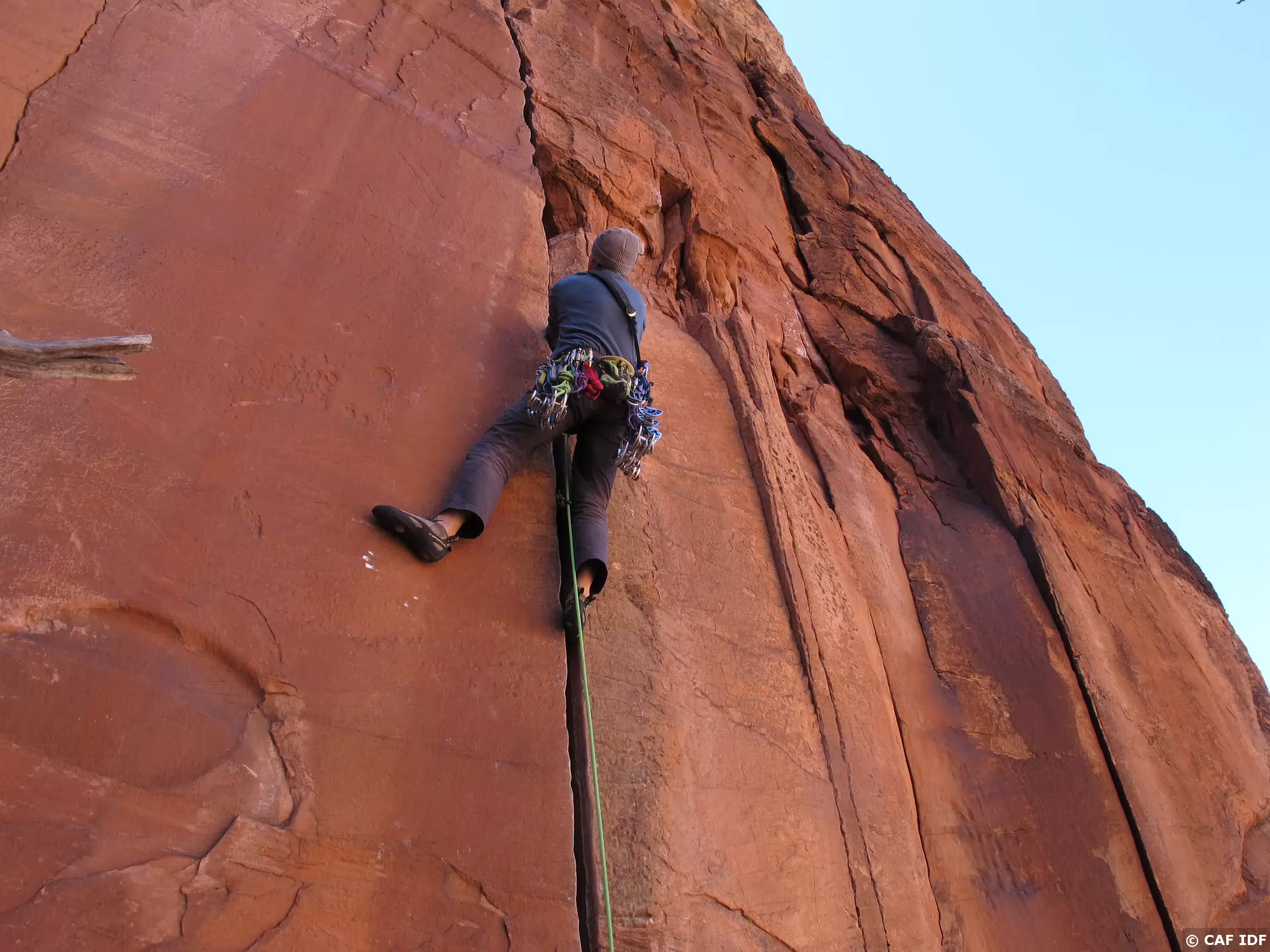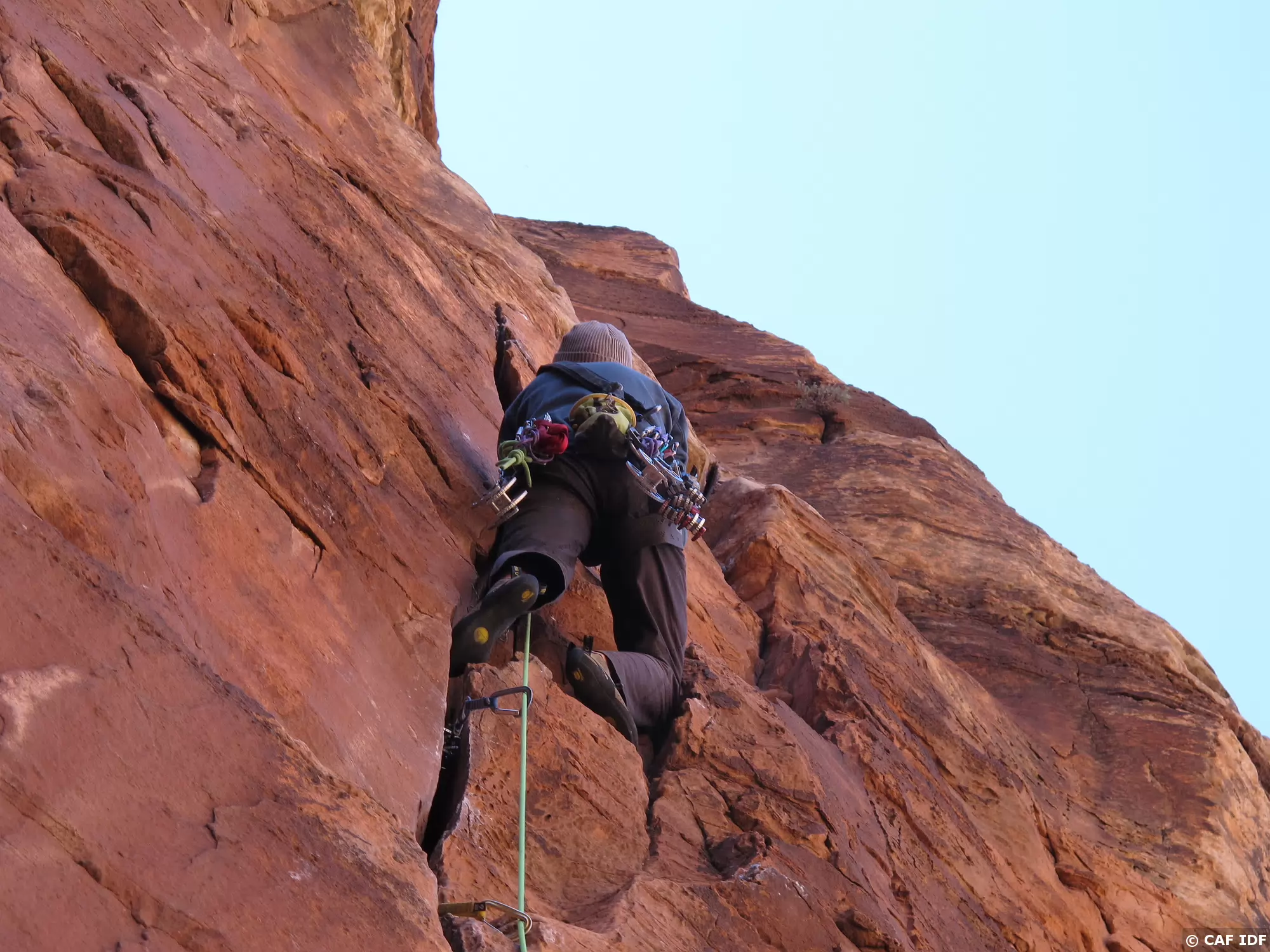 Notez les coinceurs mécaniques mis en place dans cette longueur à équiper