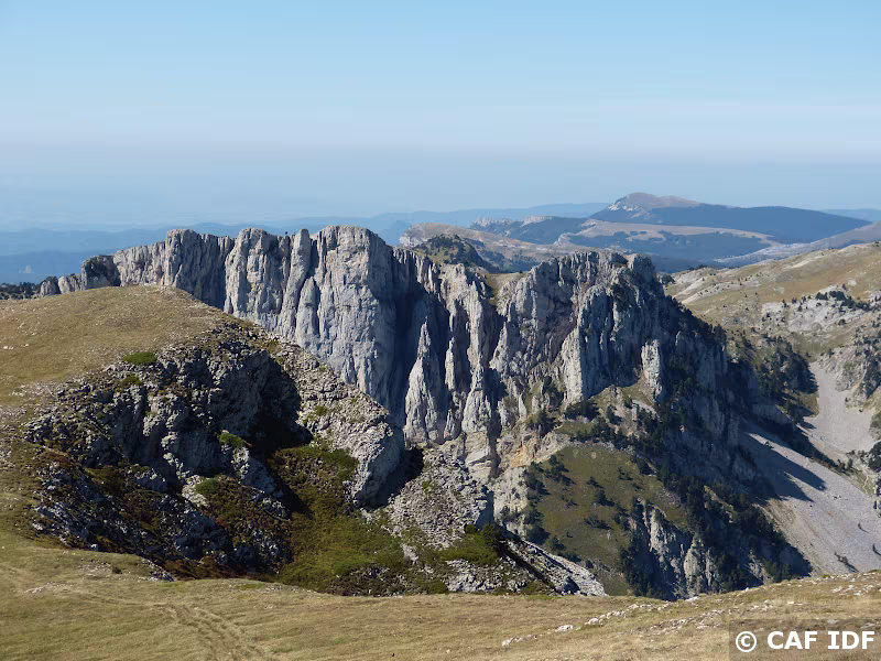 Marche d'approche vers le Mt Aiguille Le mont Aiguille, localisé sur la commune de Chichilianne, est une dent avancée de la falaise orientale du massif du Vercors, à la limite du Trièves, au sud du...