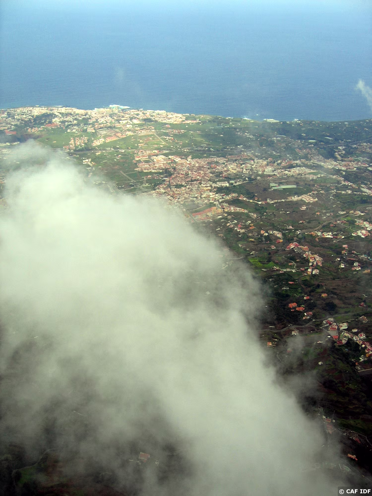 sous quelques nuages, la côte Nord de l'île apparait...