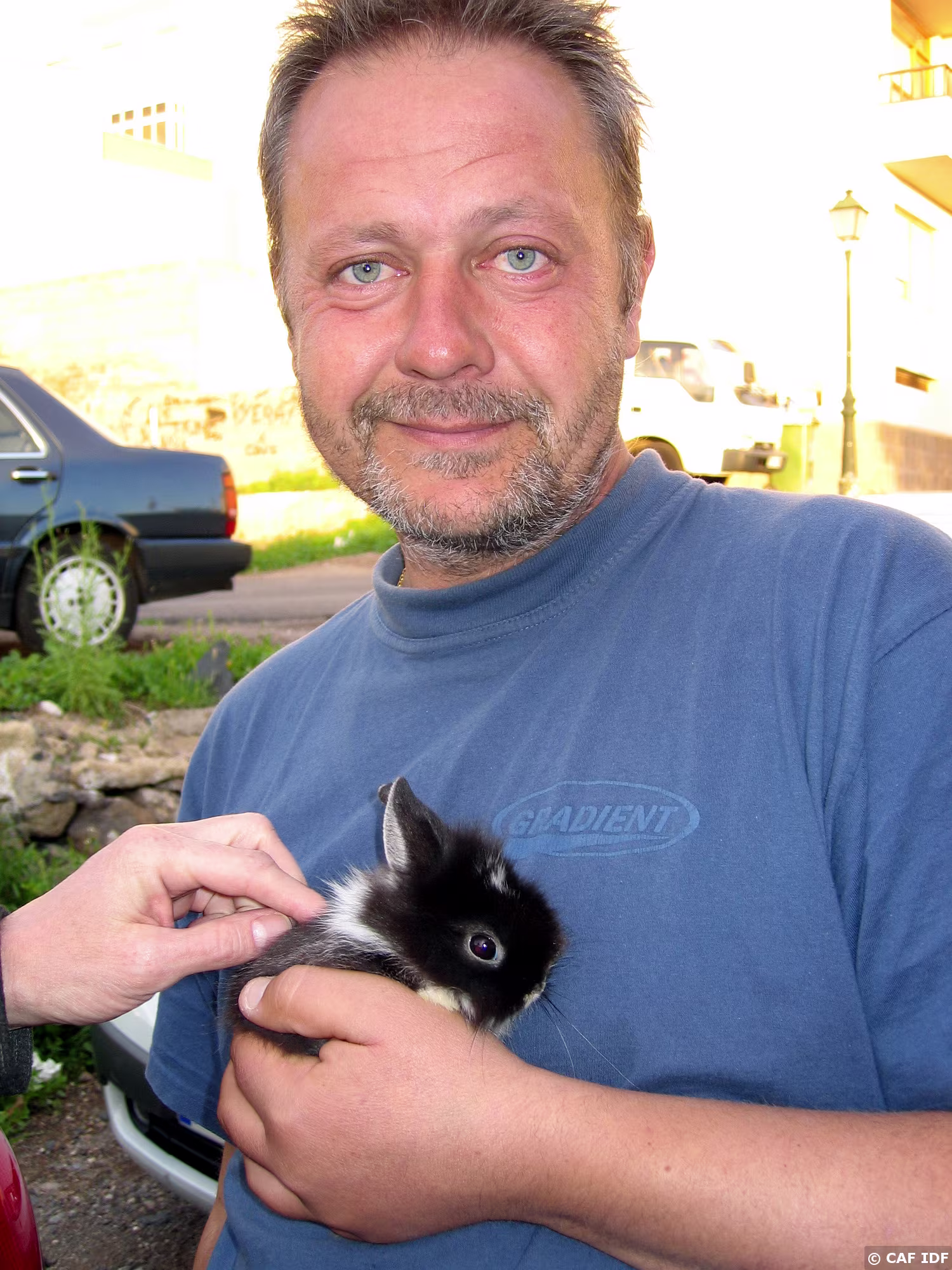 Le lapin nain d'océane (fille de Roberto) dans les bras de Patrick.