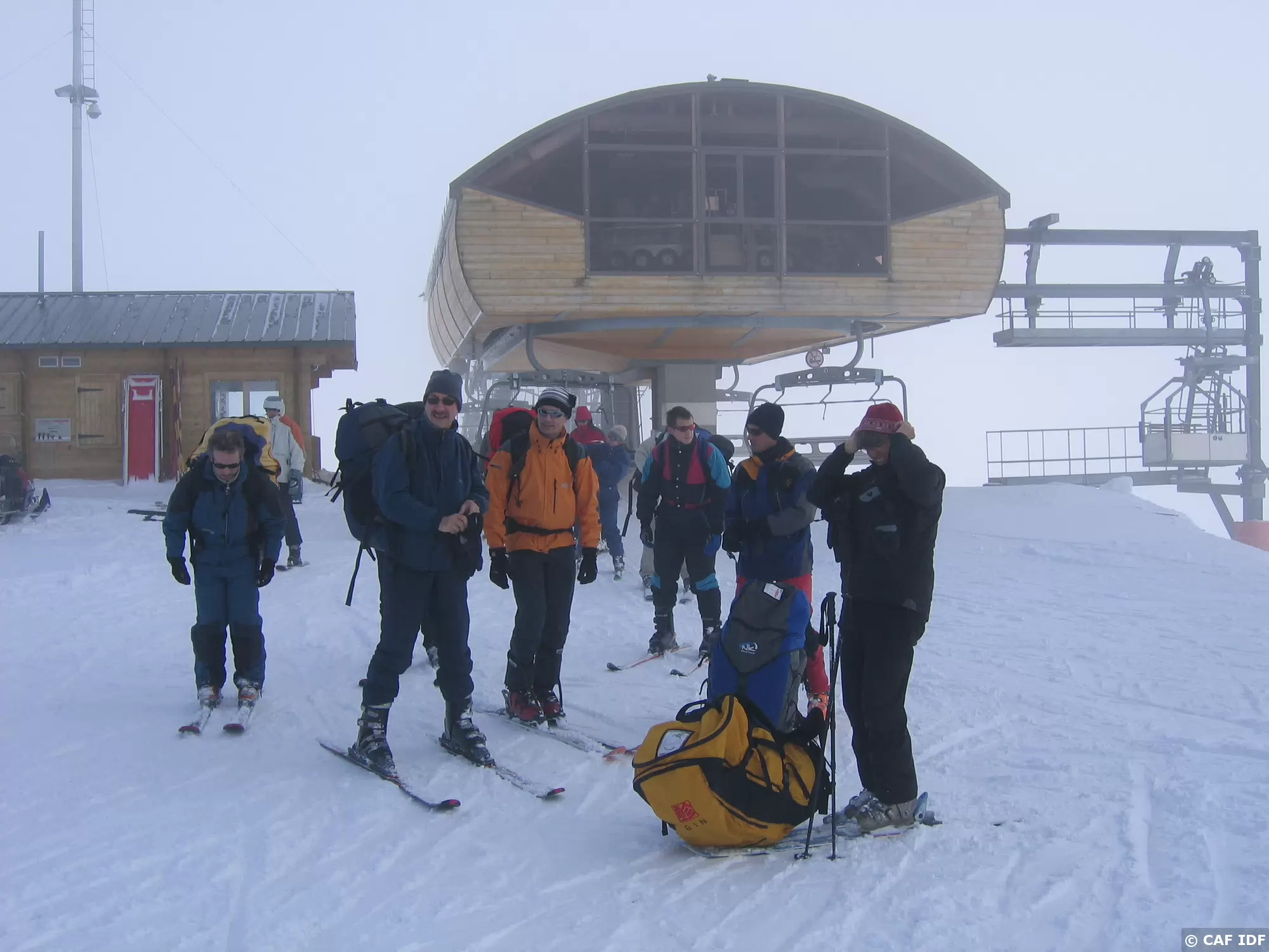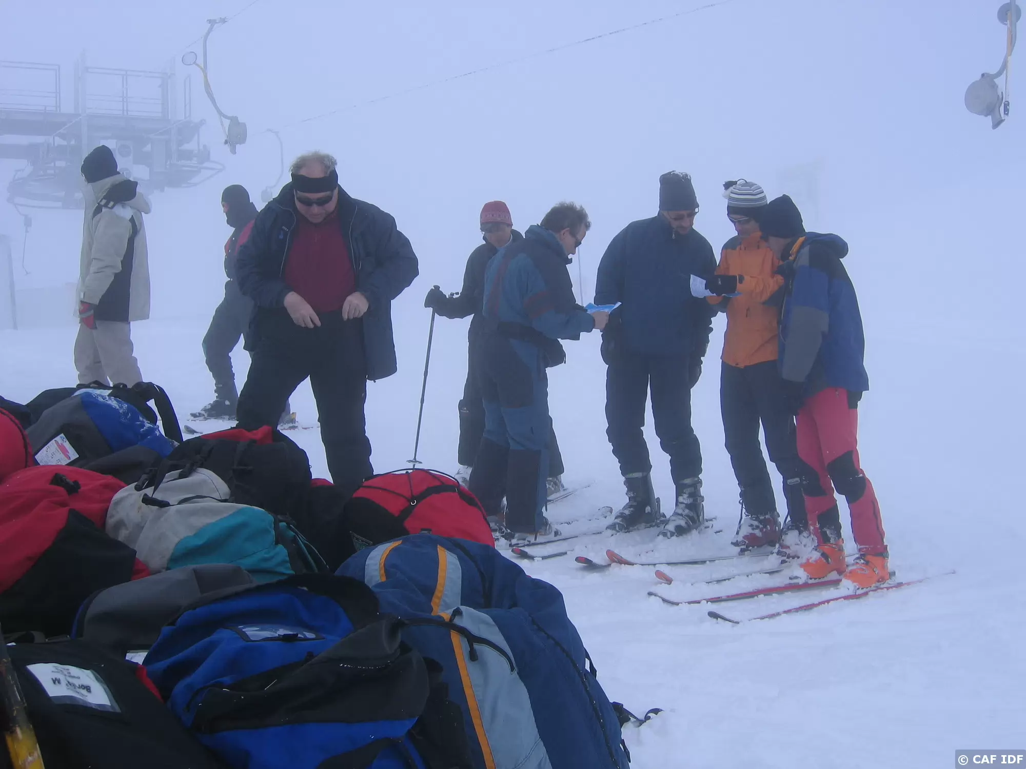 Première montée en télésiège, dans le brouillard