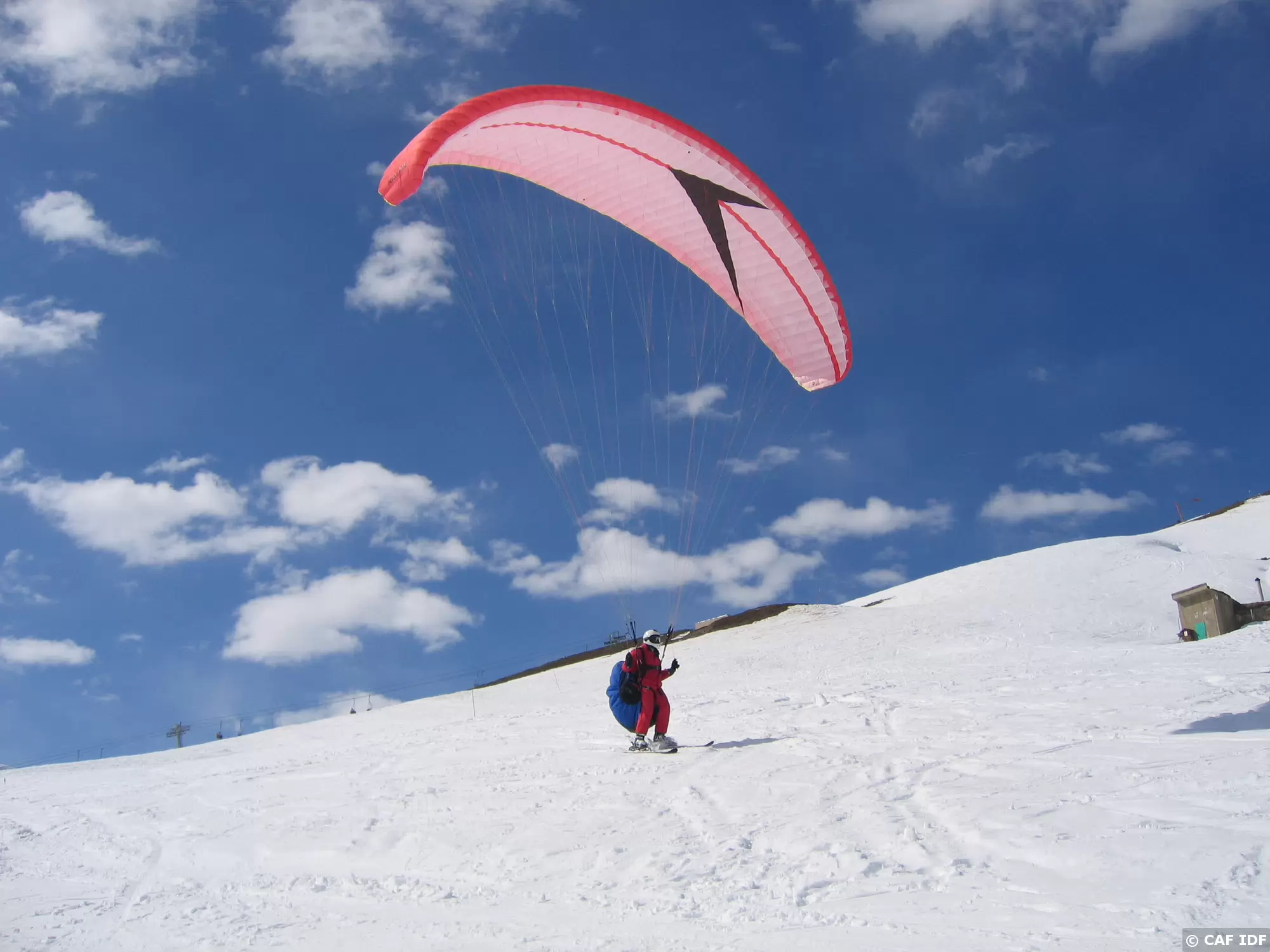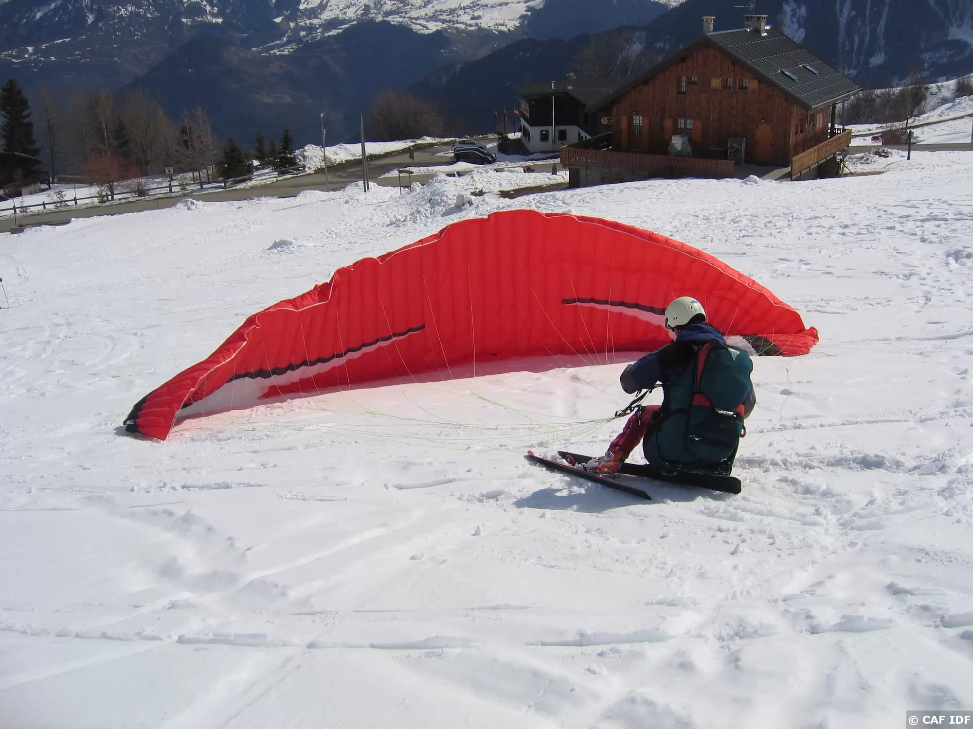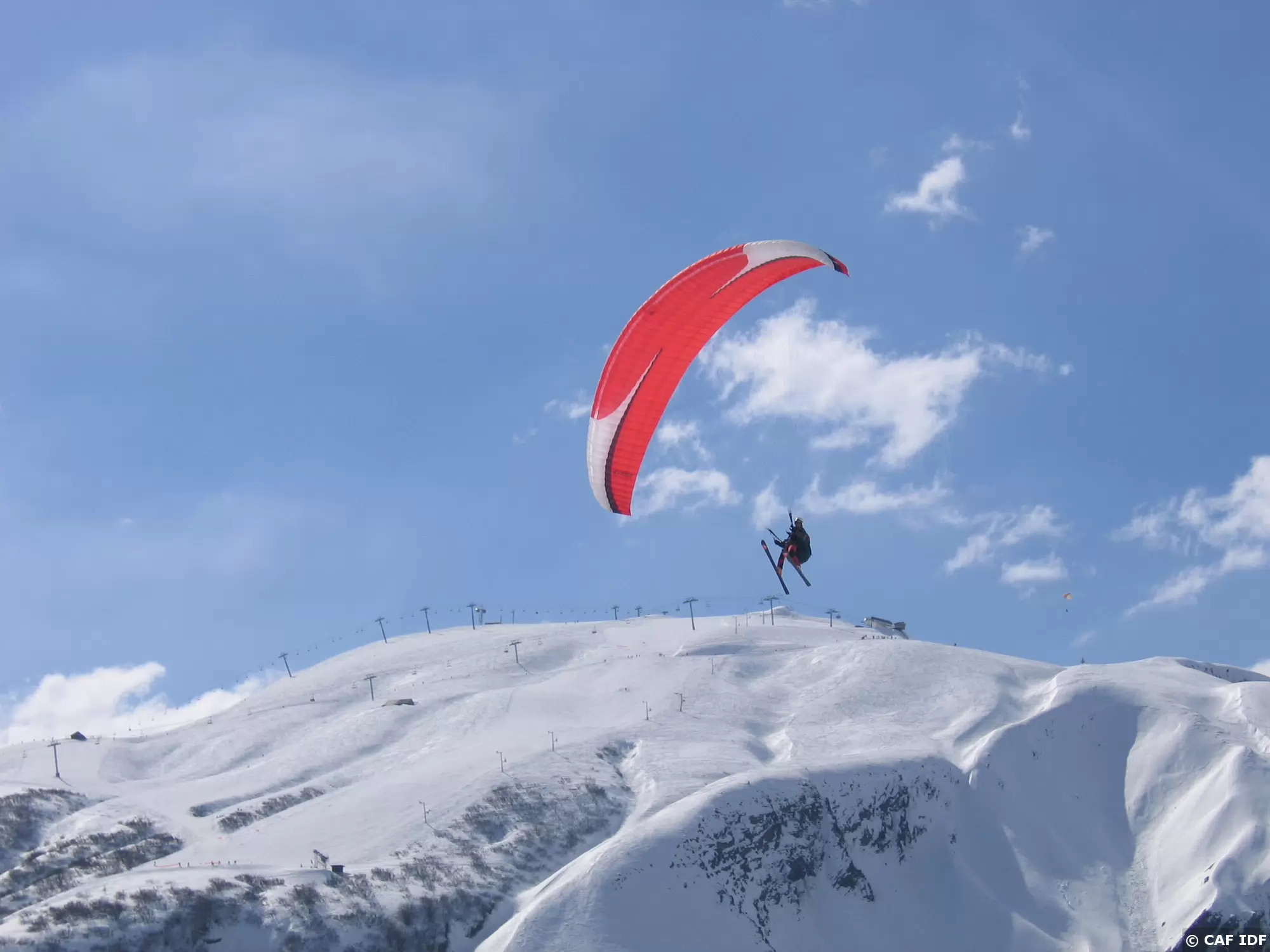 08 Décollage à ski d'un parapente biplace...