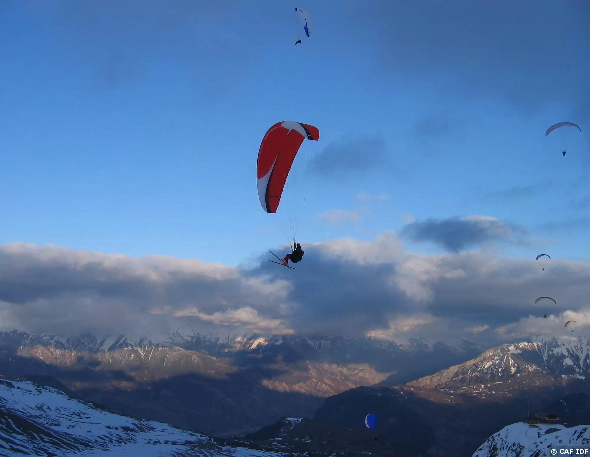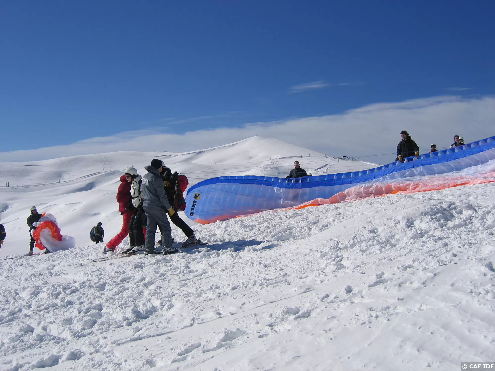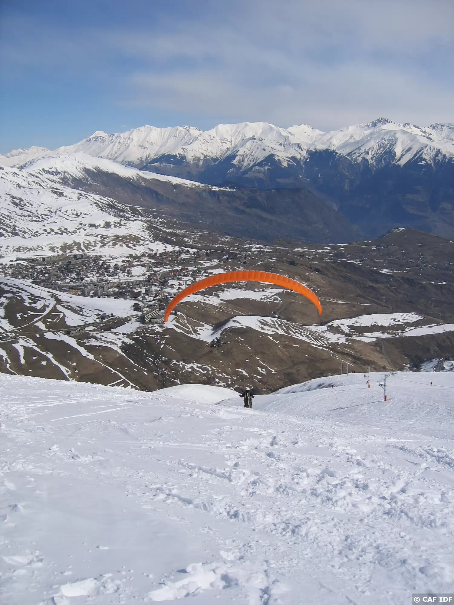 08 Décollage à ski d'un parapente biplace...
