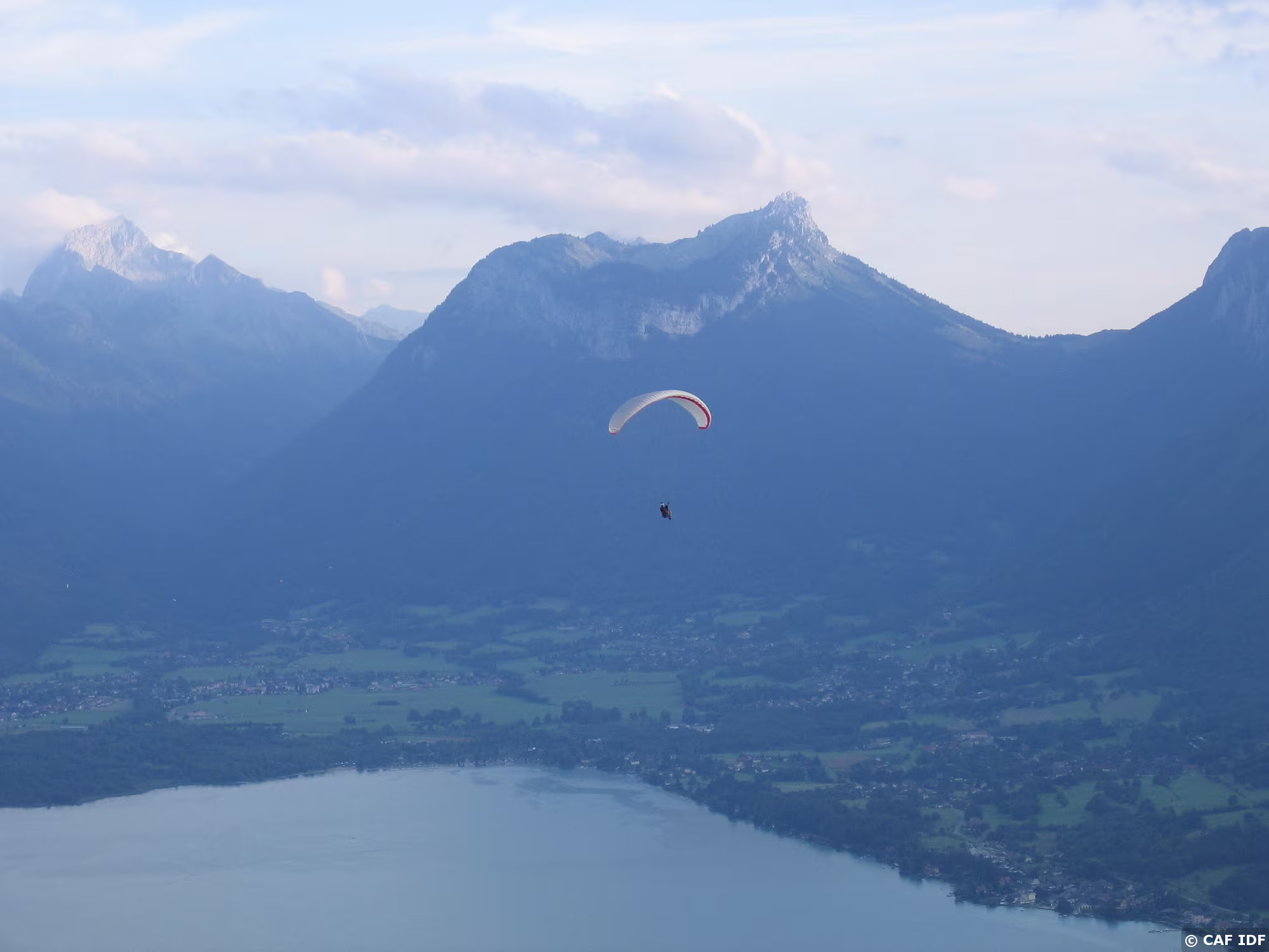 Le soir, un autre vol au-dessus du lac d'Annecy, à Planfait.