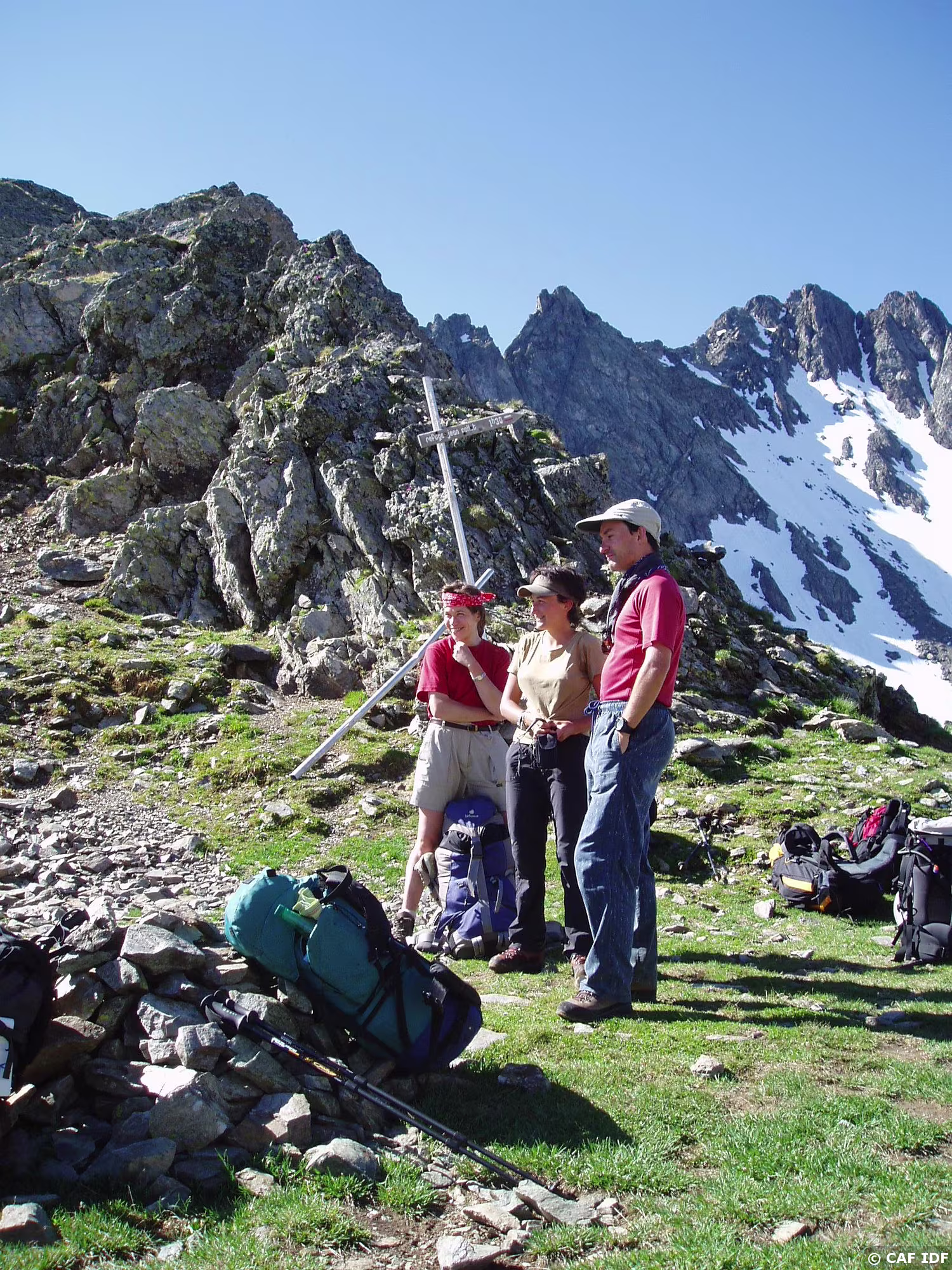Une leçon à ne pas suivre : short et tee-shirt sur le névé, bouh !