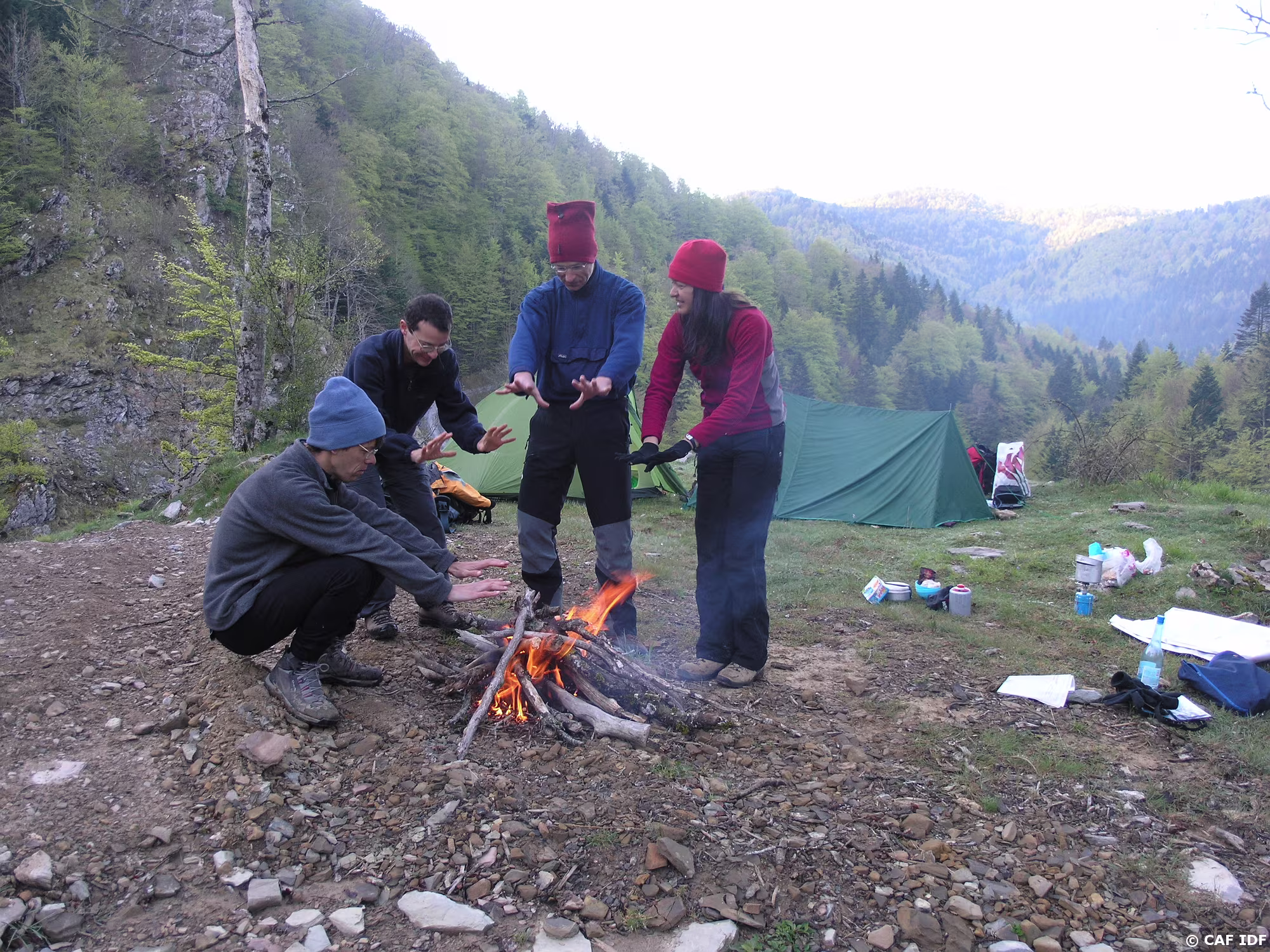 Le groupe allume le feu dans un effort de concentration