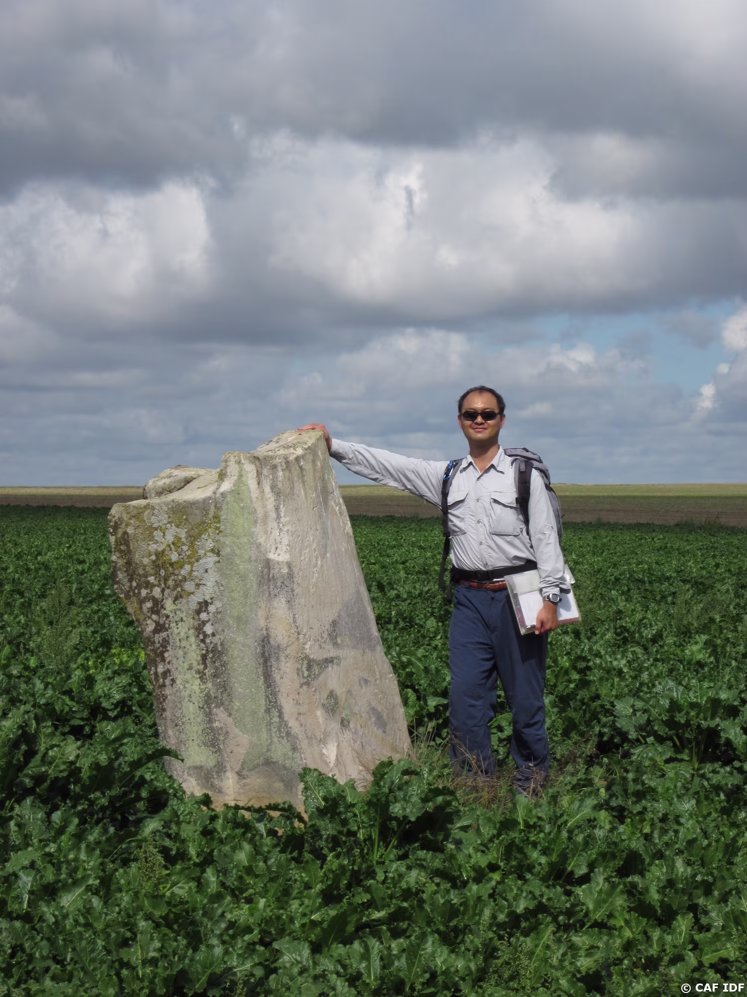 Patrick et le menhir de "la pierre aux prêtres" du village de Tousson
