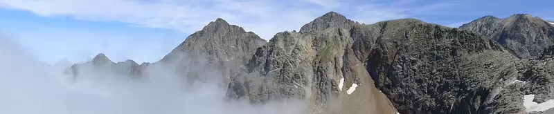 Ambiances (voile au-dessus du lac du Portillon. A gauche, le col inférieur de Litérole ; au centre, le Pic Royo ; à gauche, le Pic Perdiguère)