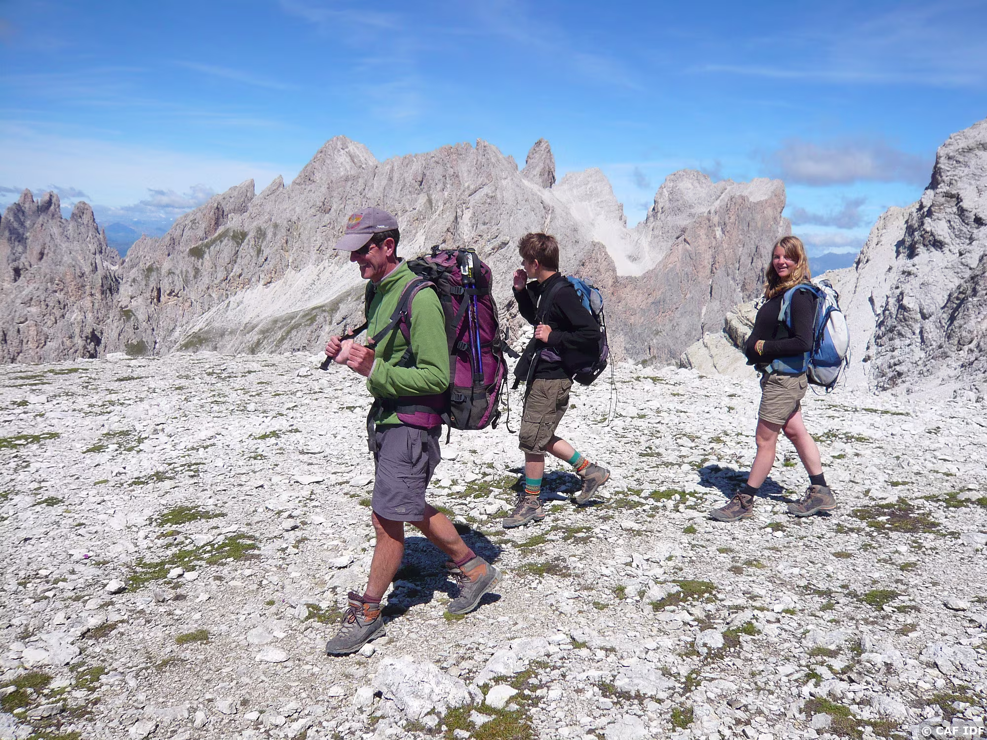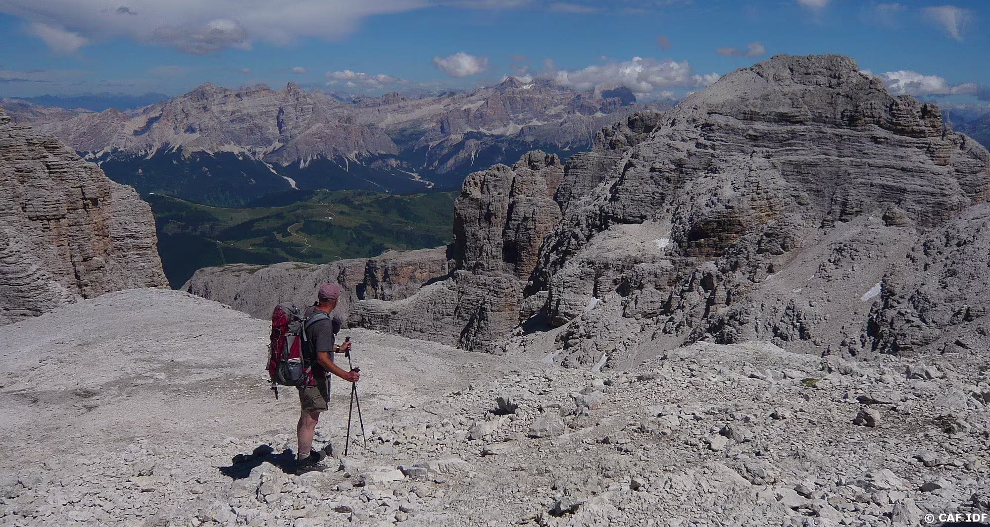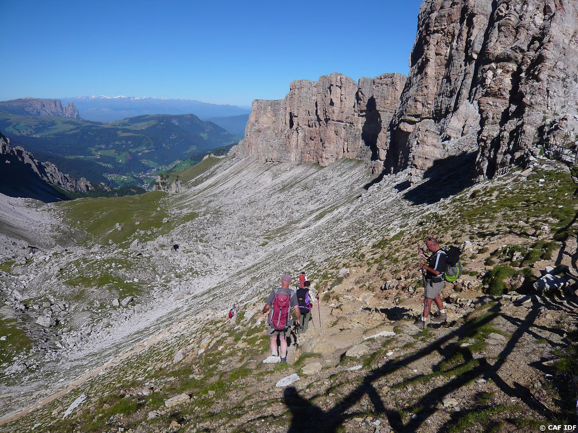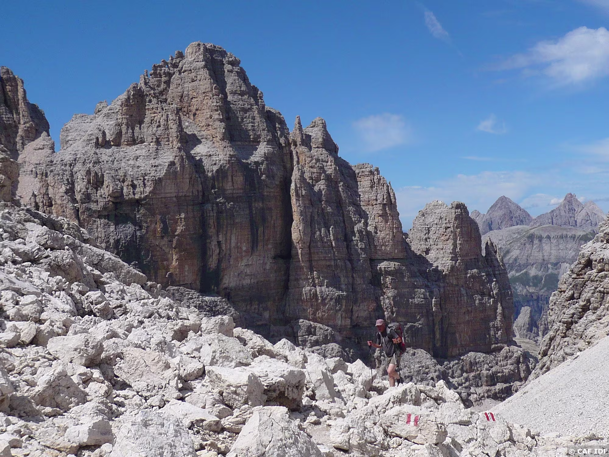 Montée au Piz Boé, la Marmolada derrière.