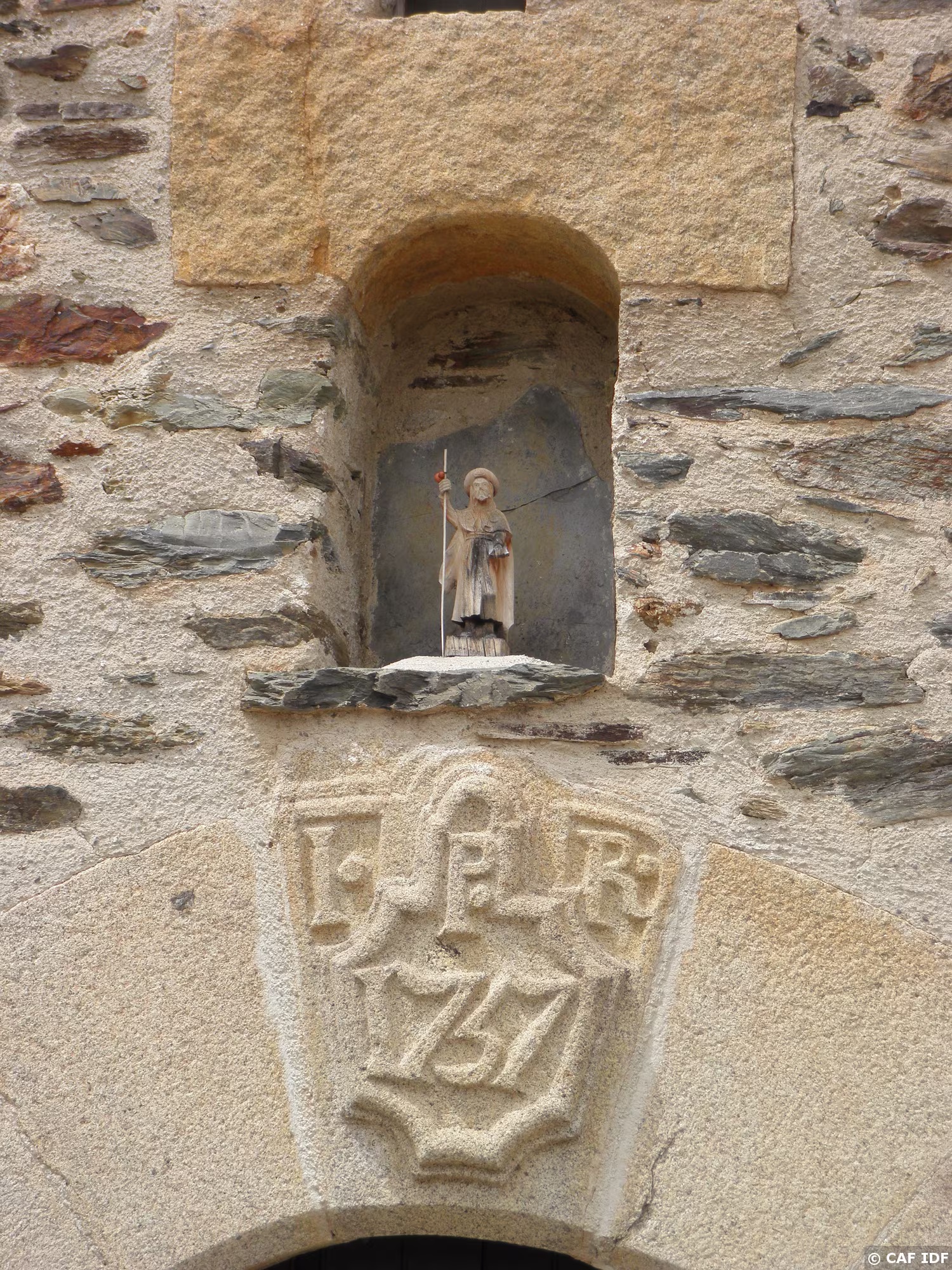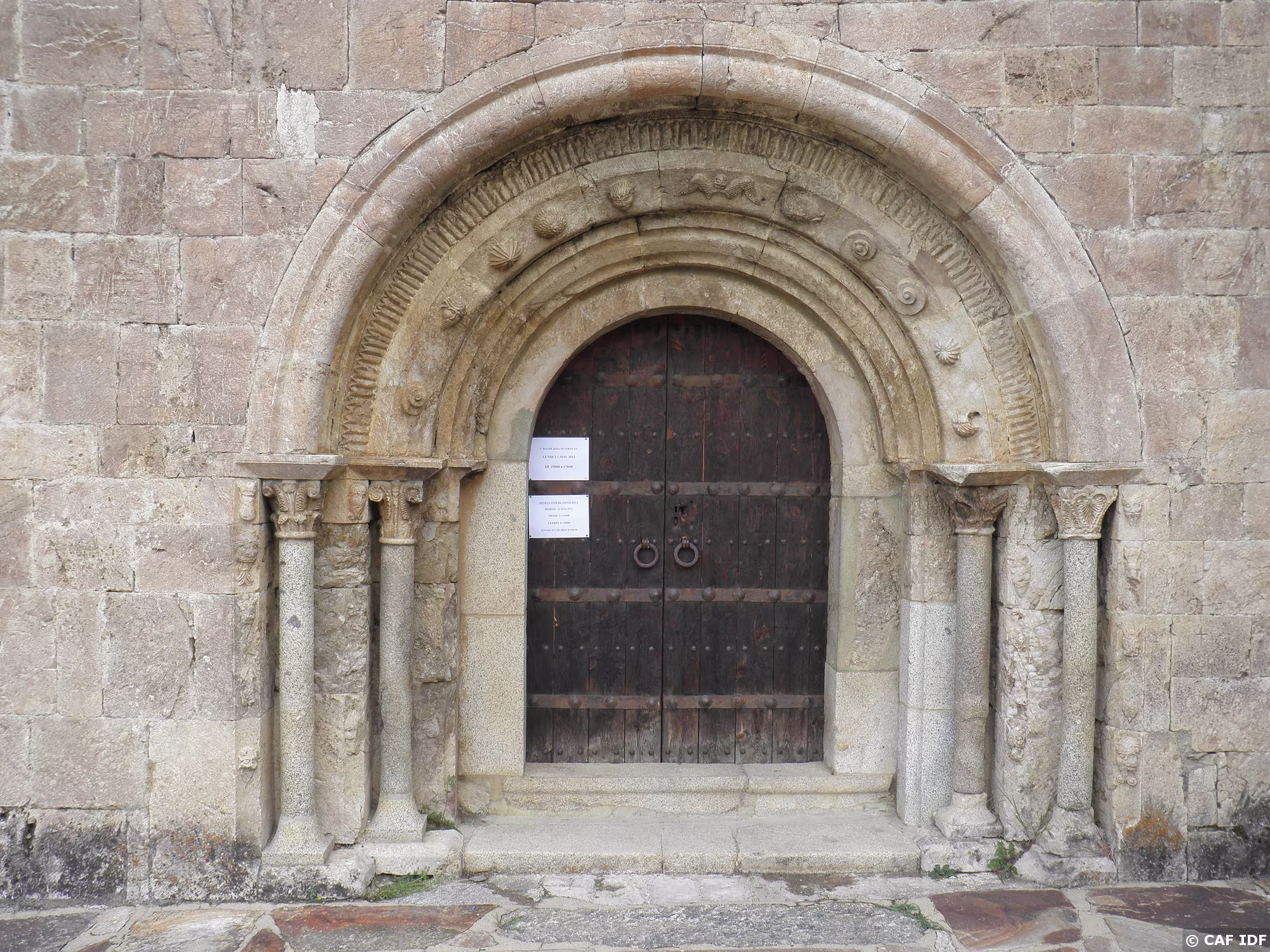 détail du porche de l'église de Nahuja, sur un des chemins de Saint Jacques.
