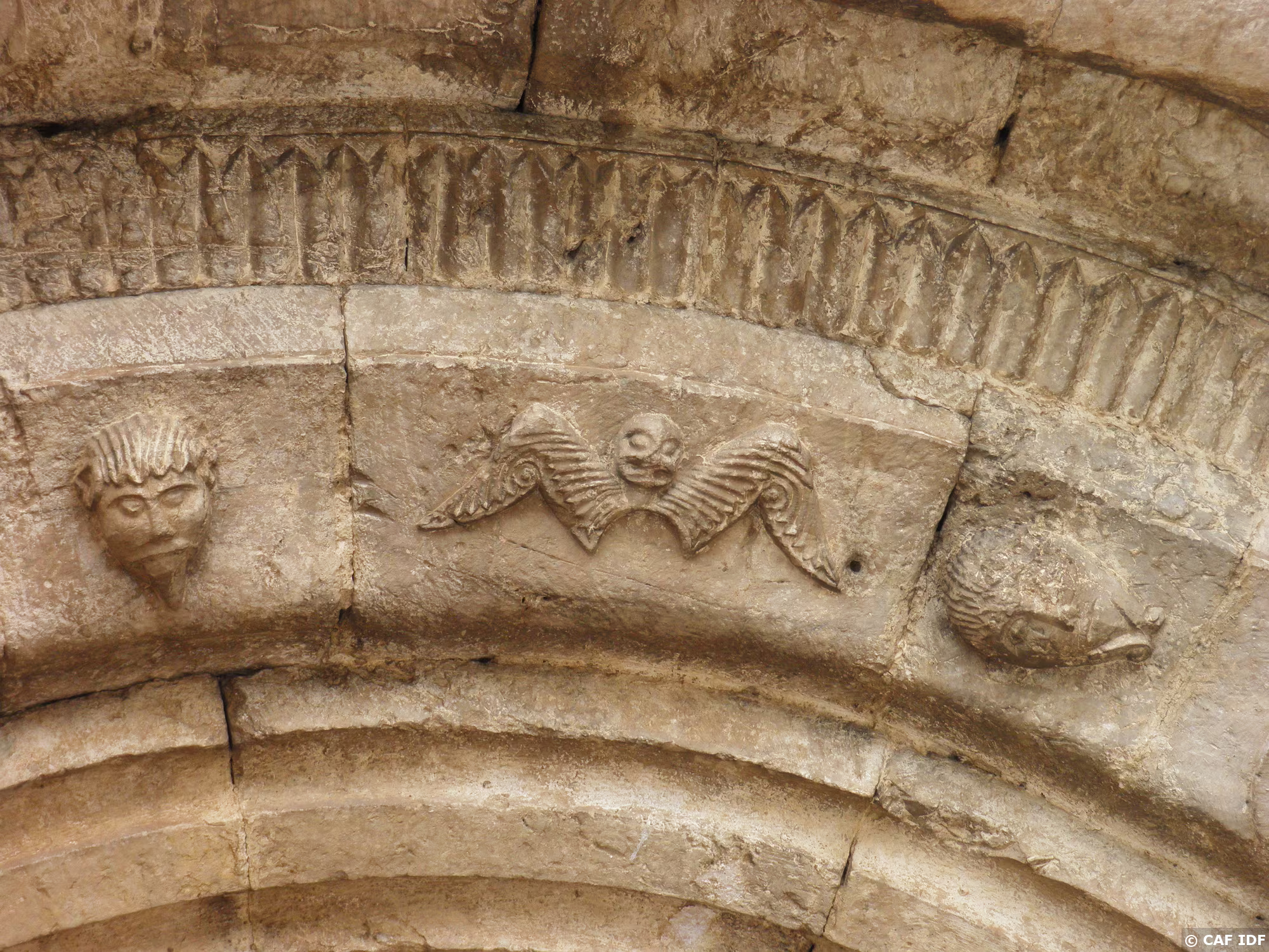 PXL010 détail du porche de l'église de Nahuja, sur un des chemins de Saint Jacques.