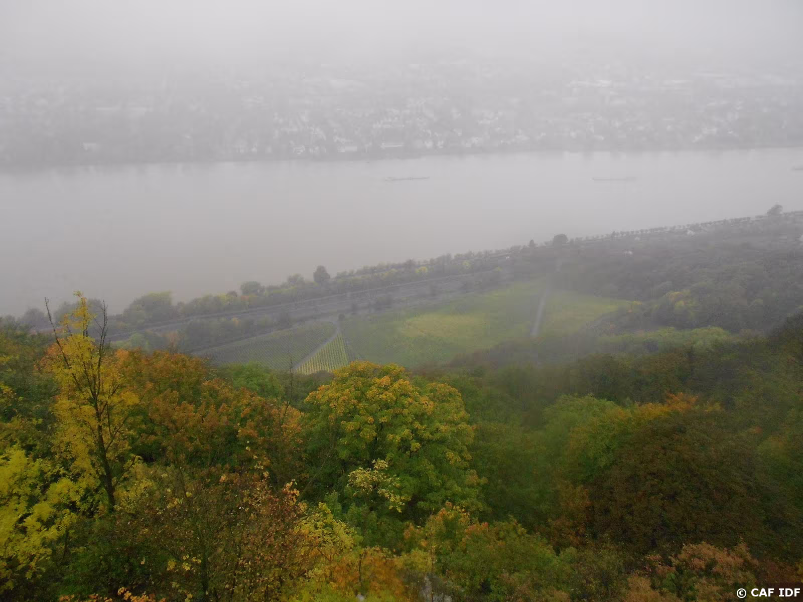 PXL024 Vue sur le Rhin depuis le Drachenfels, aux pentes plantées de vignes.