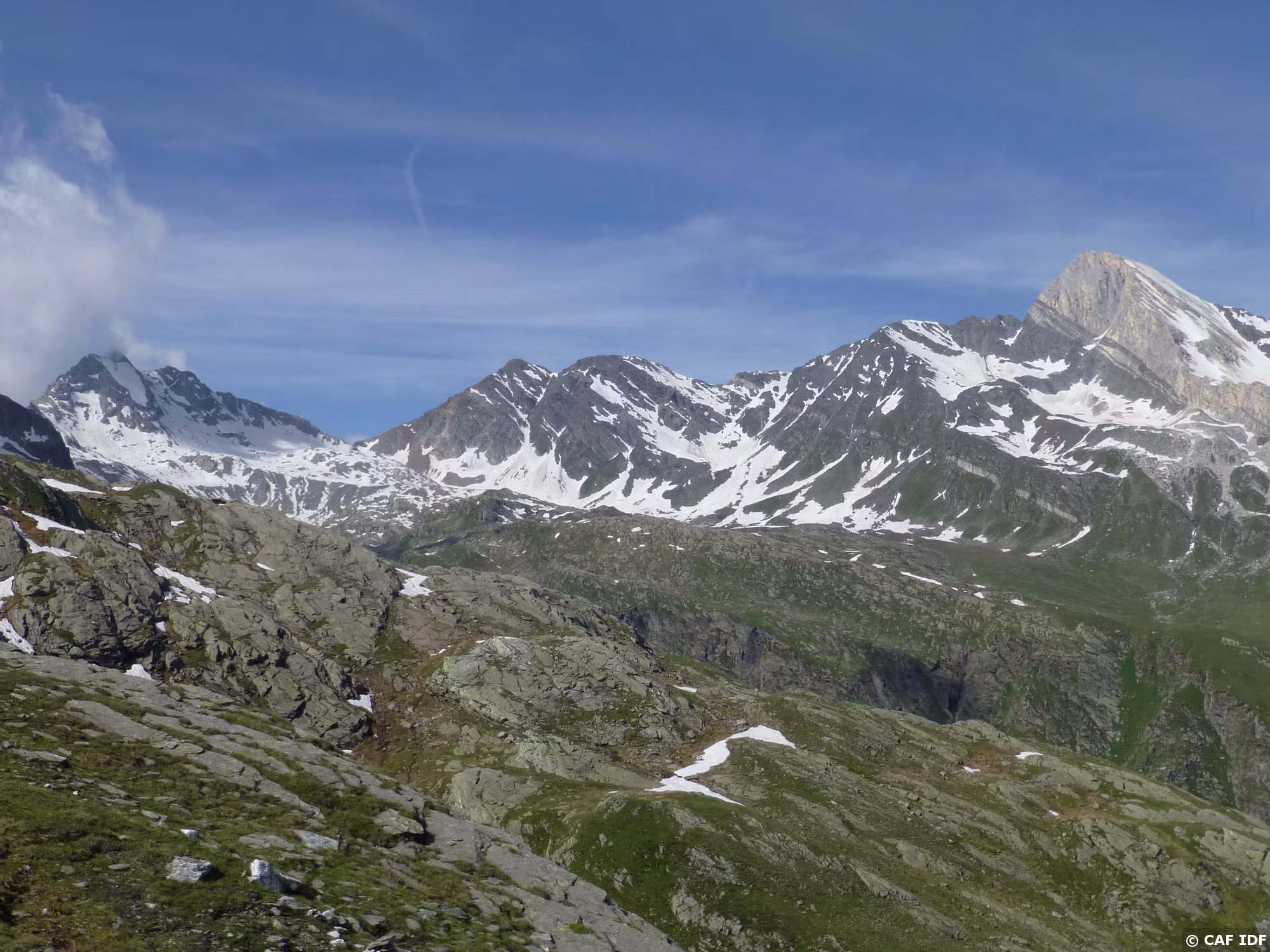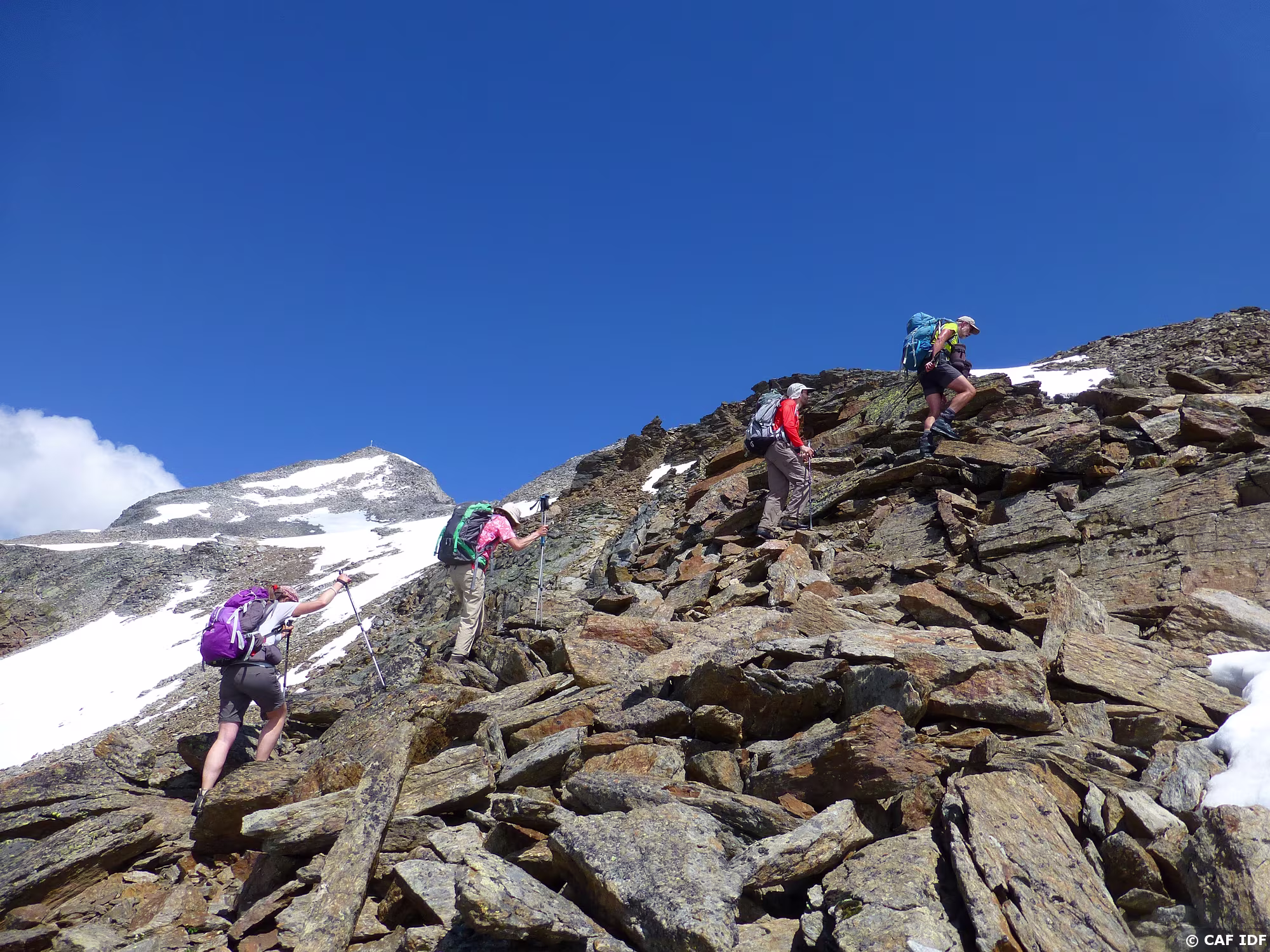 PXL146 Une arête de pierres de plus en plus grosses pour rejoindre le sommet en arrière plan.