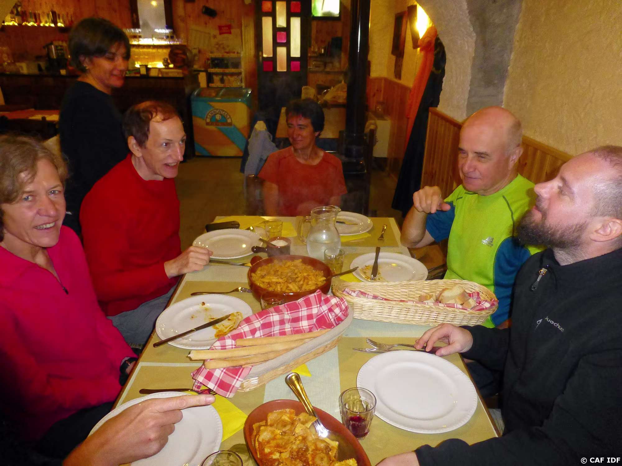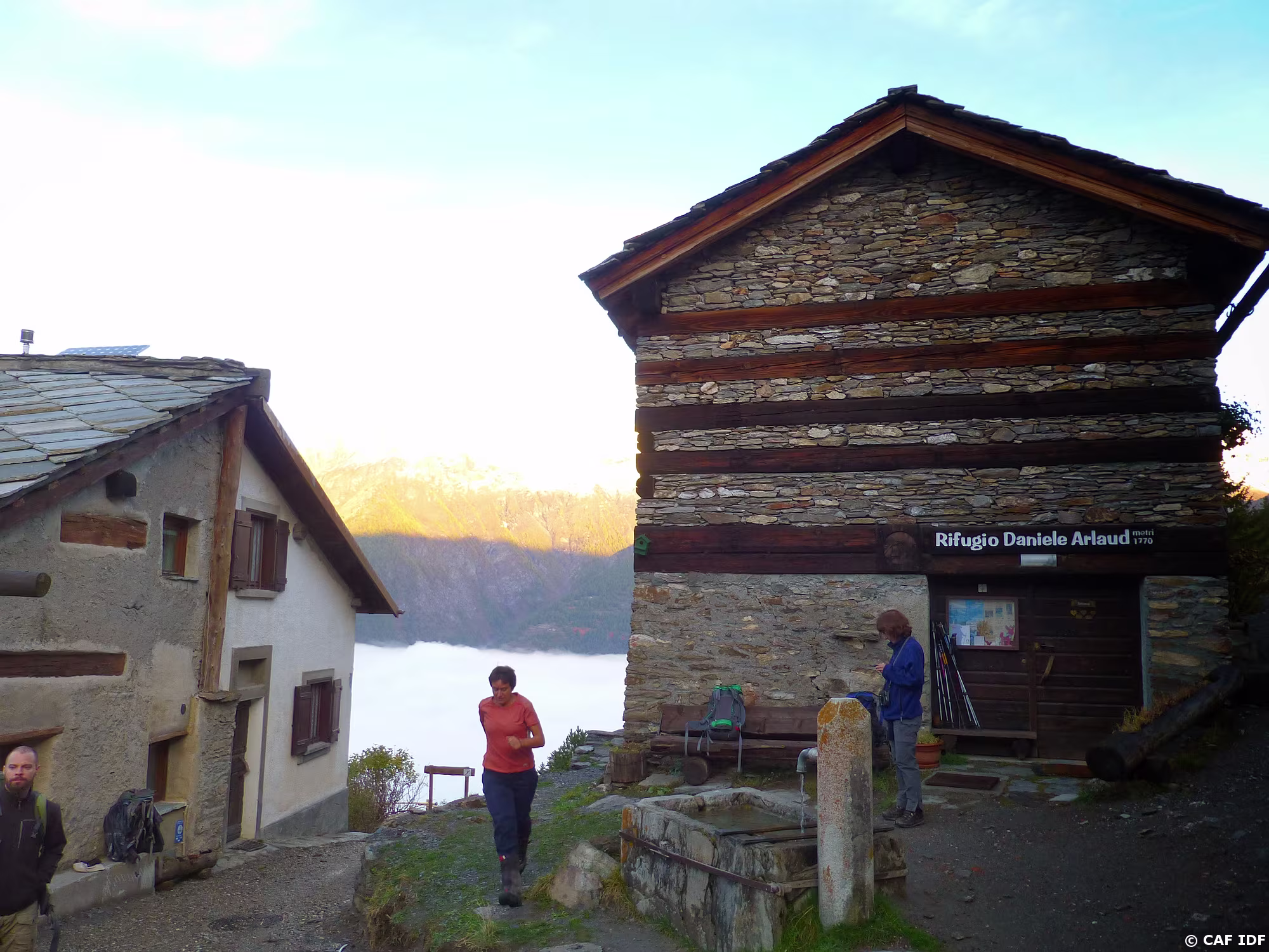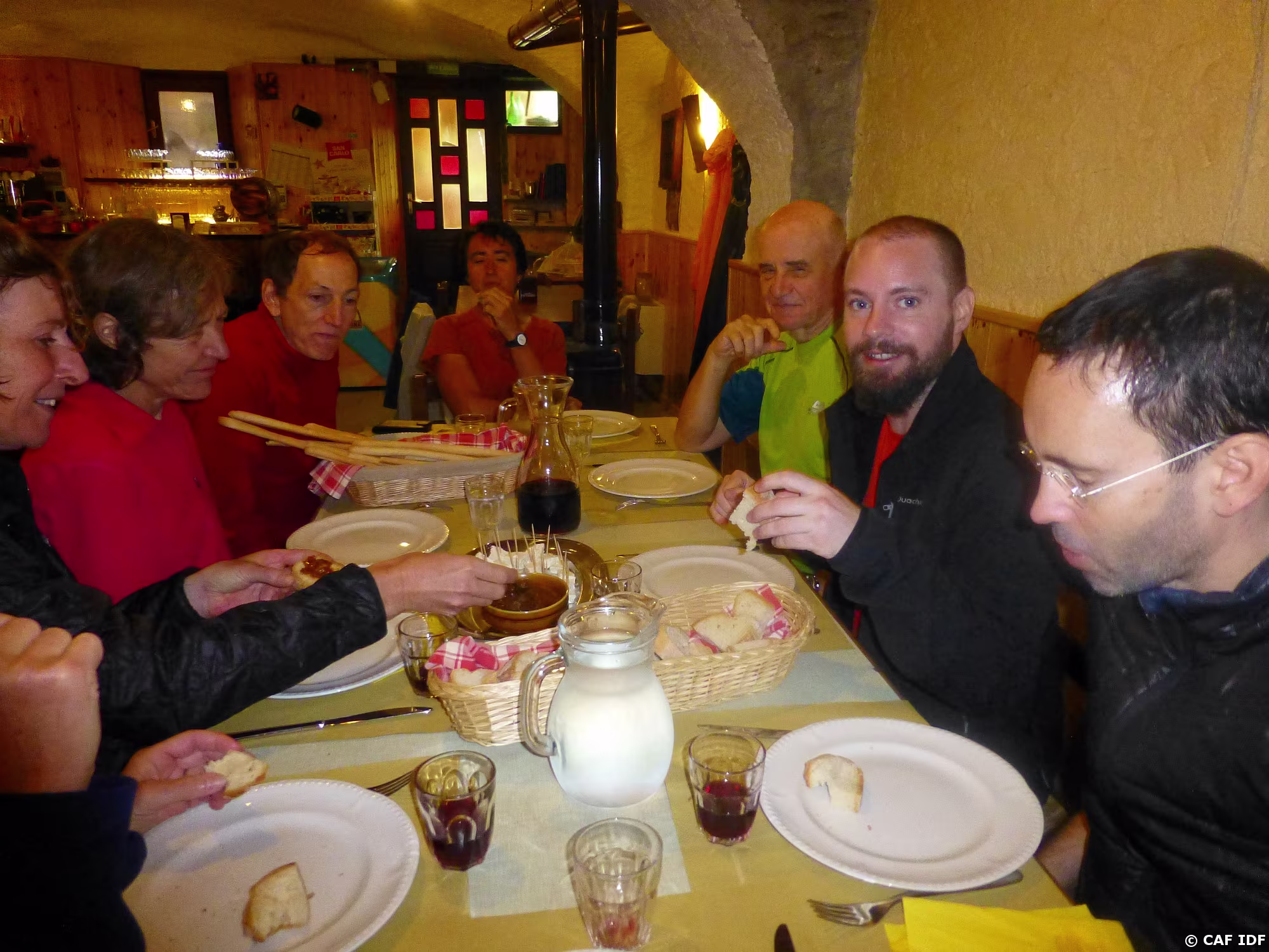 PXL043 Des randonneurs mouillés ont trouvé réconfort à Rodoretto pour le pique-nique.