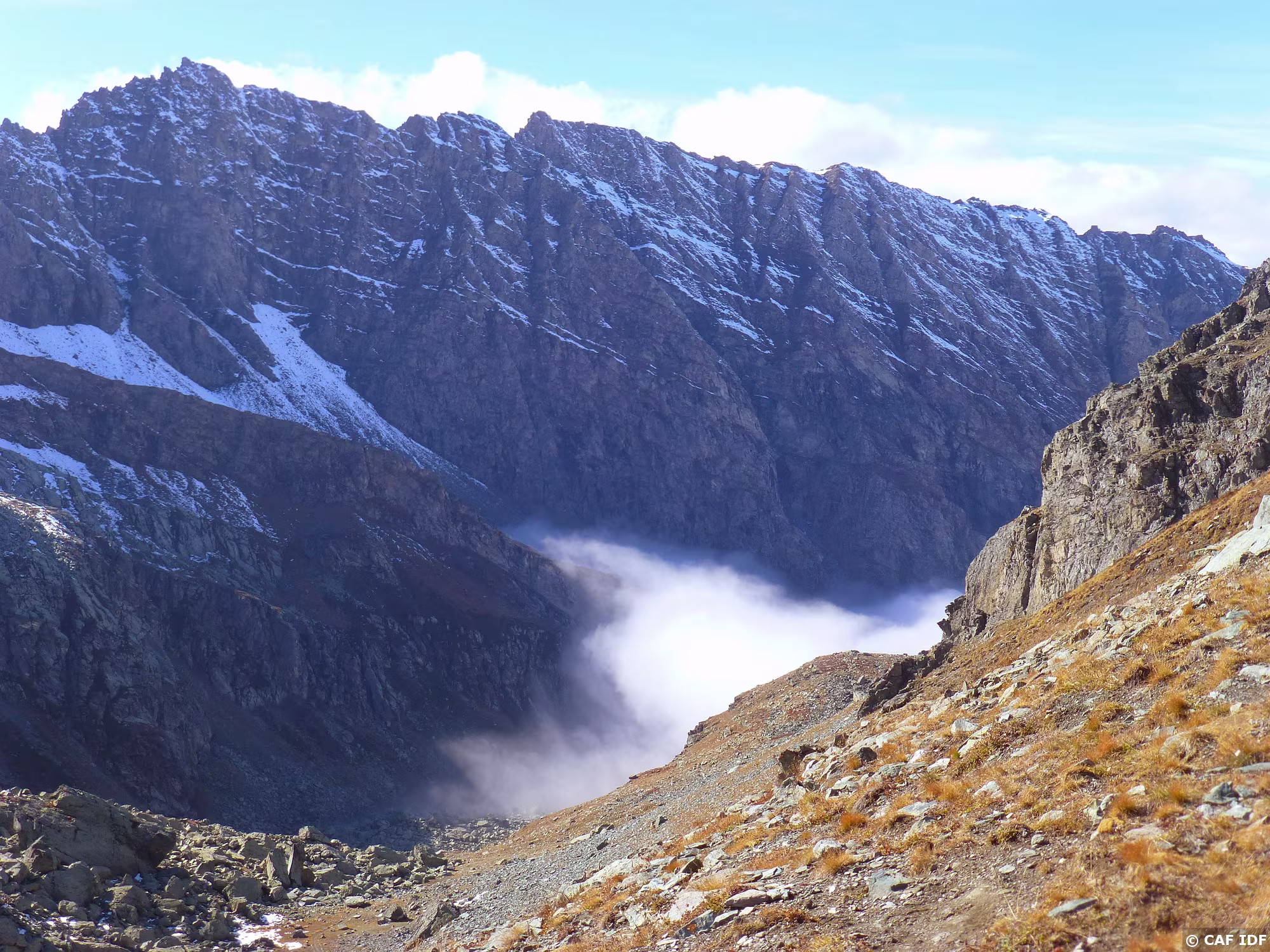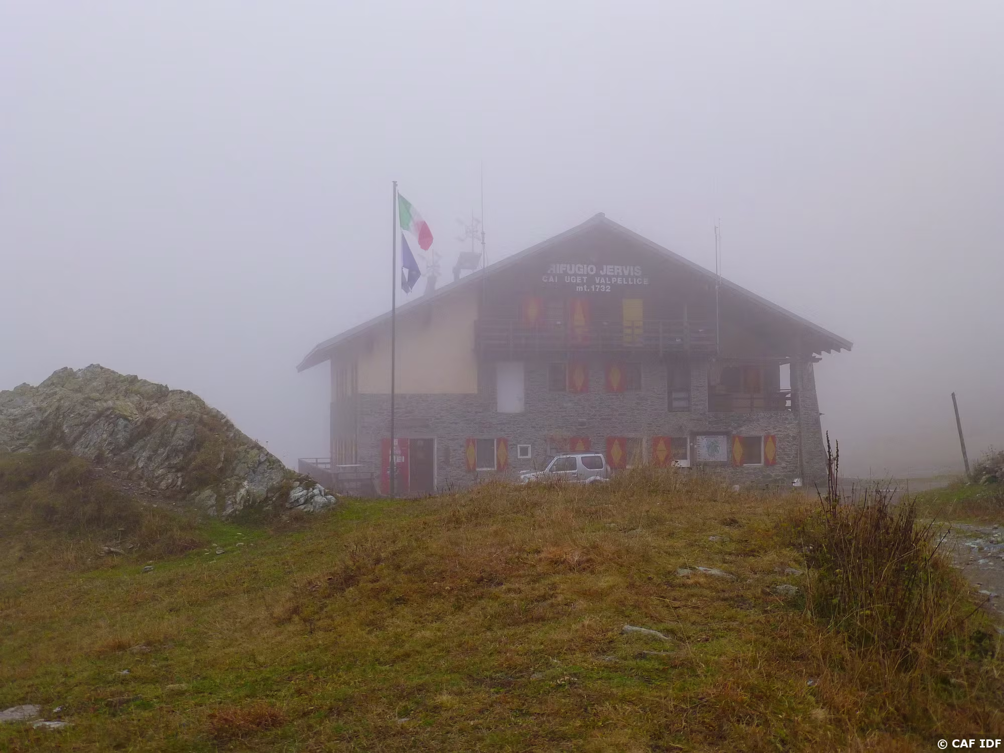 Après 1h de brouillard, le refuge Jervis apparaît enfin.