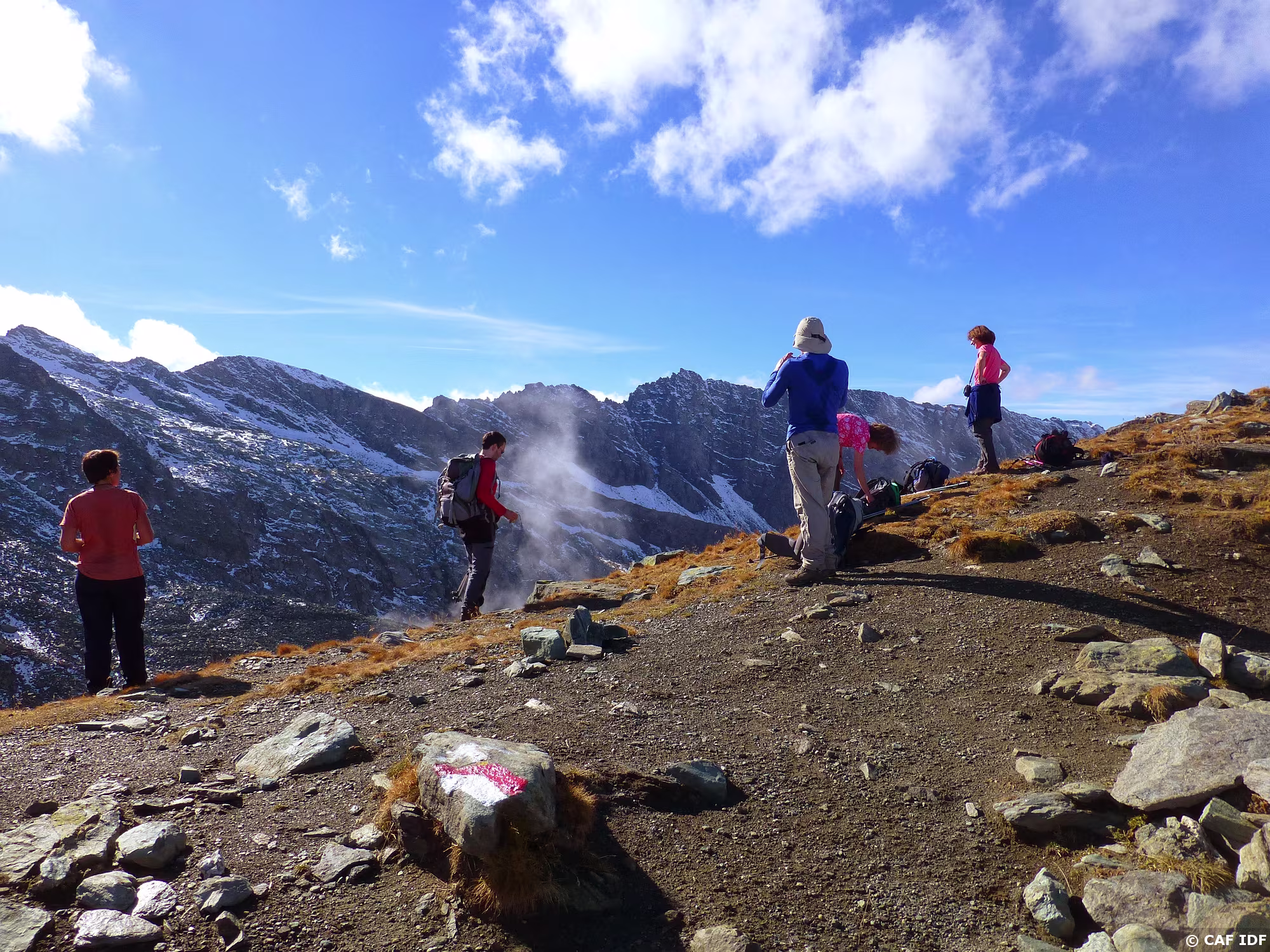 Des randonneurs mouillés ont trouvé réconfort à Rodoretto pour le pique-nique.