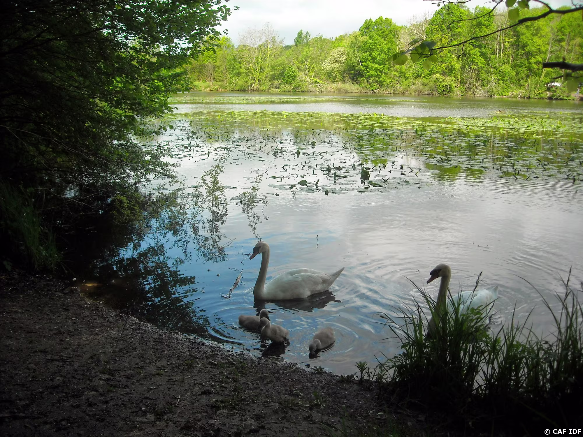Etang de Comelle. Au fond, le logis de la Reine Blanche