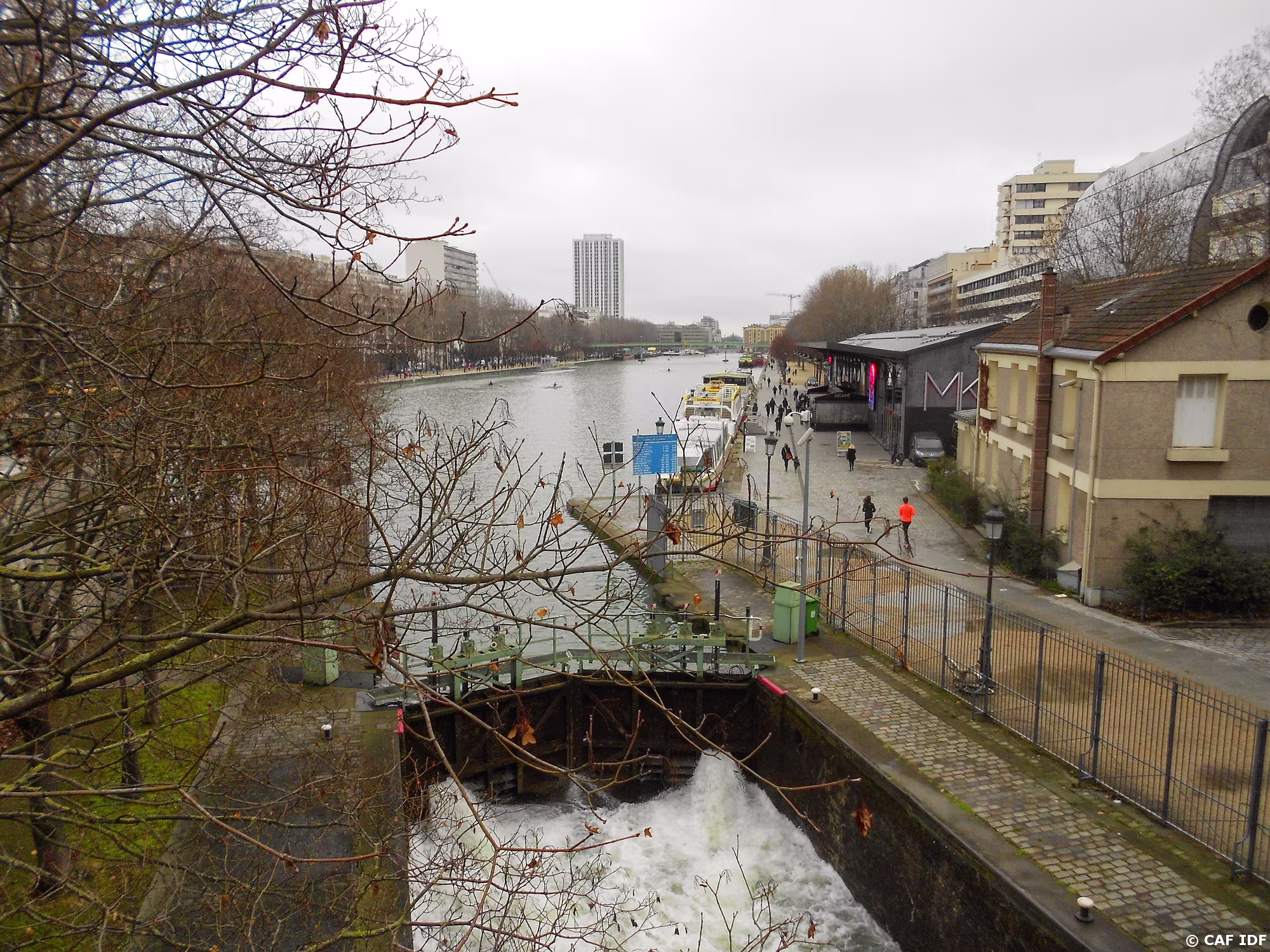 Pont levant de la rue de Crimée (1885) et l'Eglise St-Jacques-St-Christophe (1844) de style néo-classique.