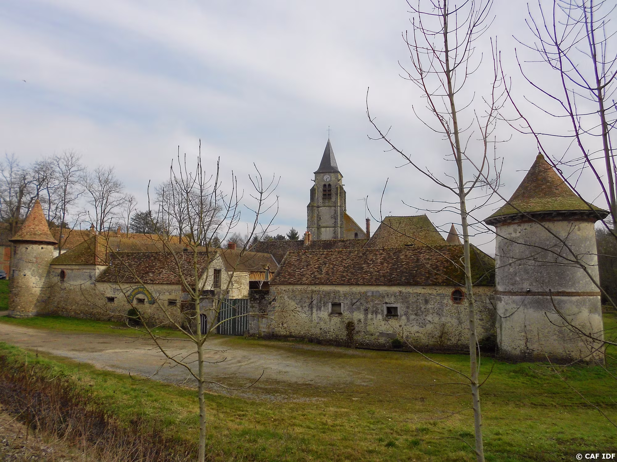 PXL003z1662 La ferme des Tourelles, XIIIè-XVIè s., et l'église Saint Cyr, St-Cyr-sous-Dourdan.