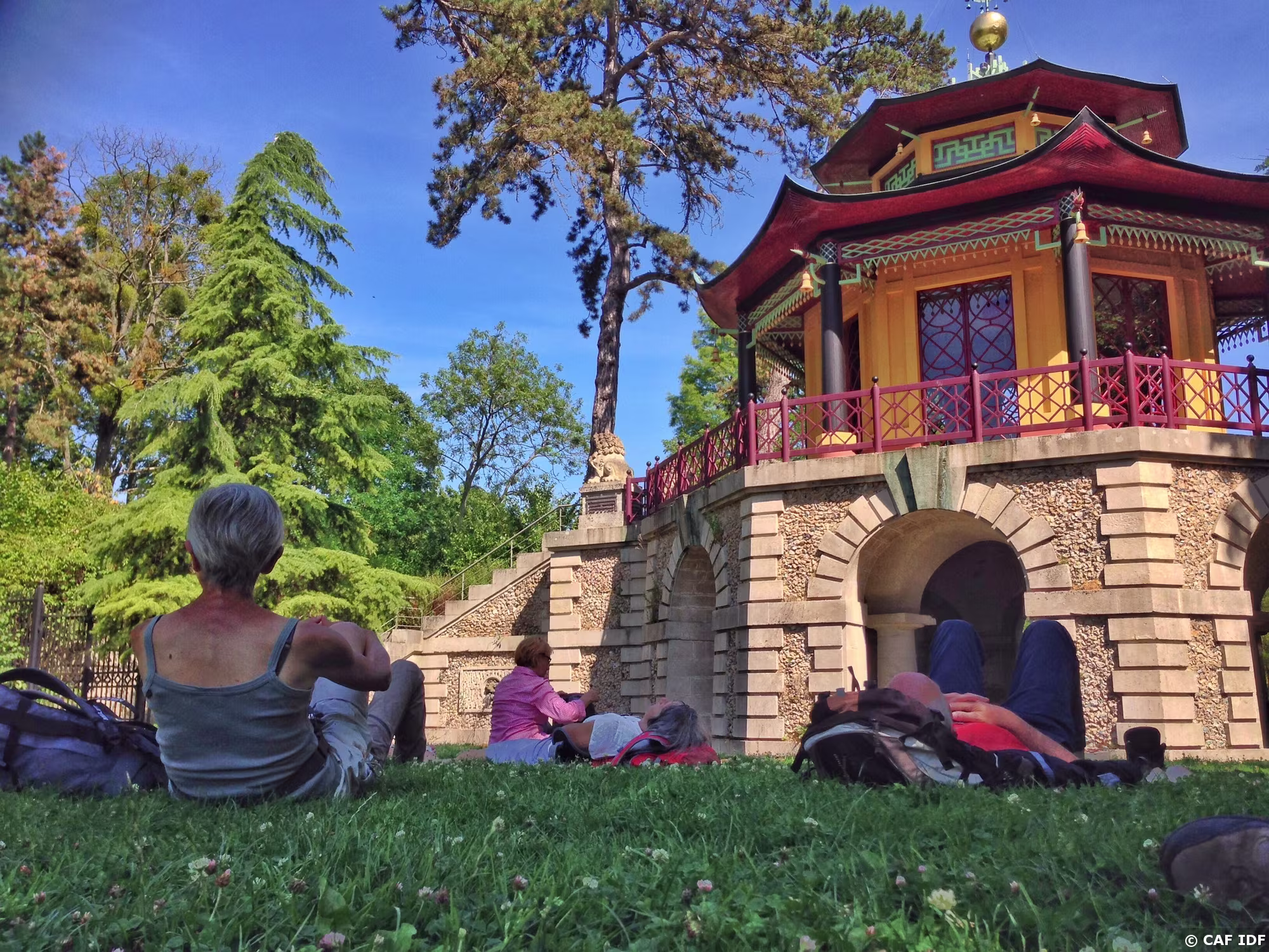 Un repos bien mérité devant le pavillon chinois