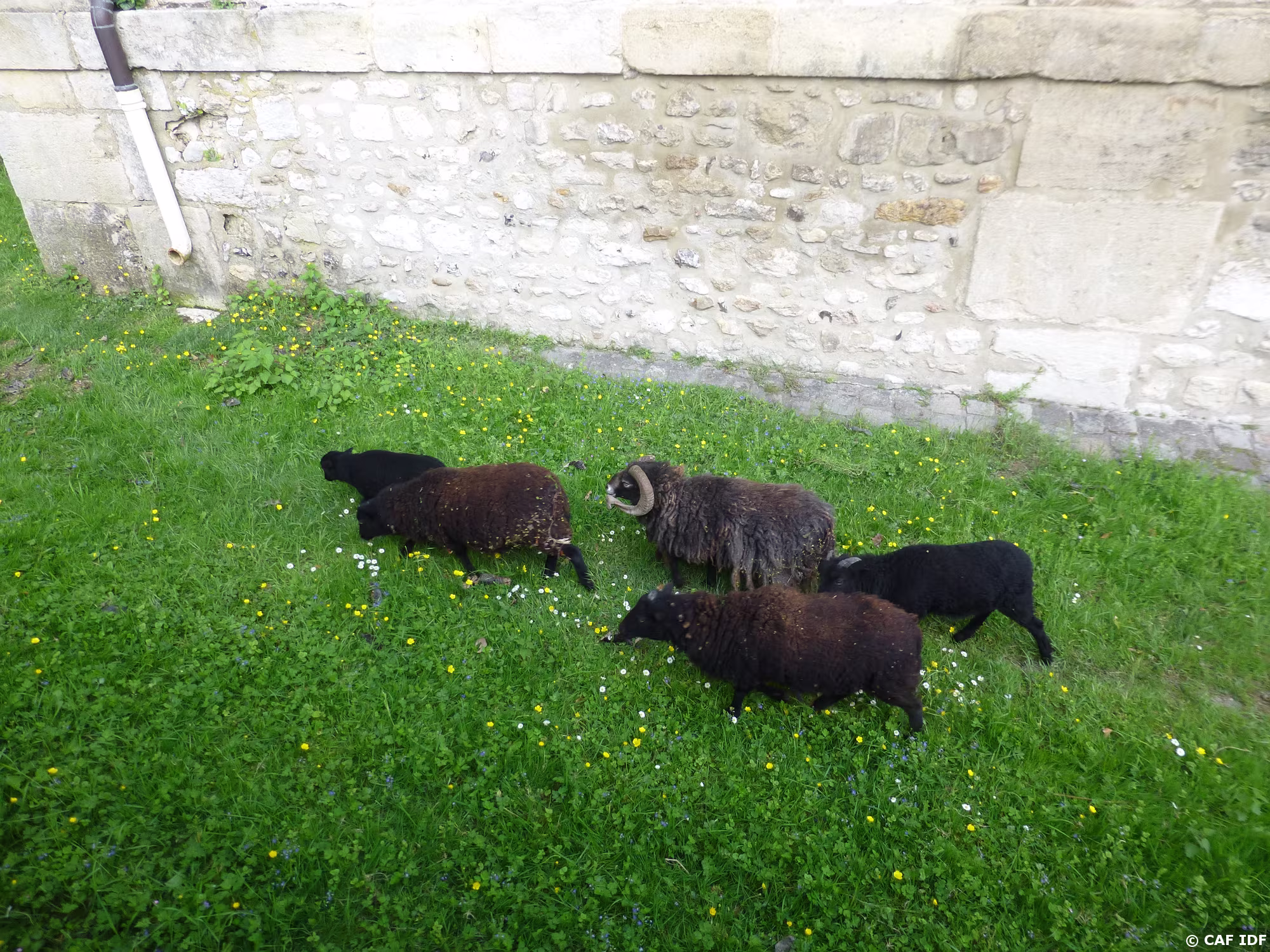Des moutons dans les douves du château de la Roche Guyon !