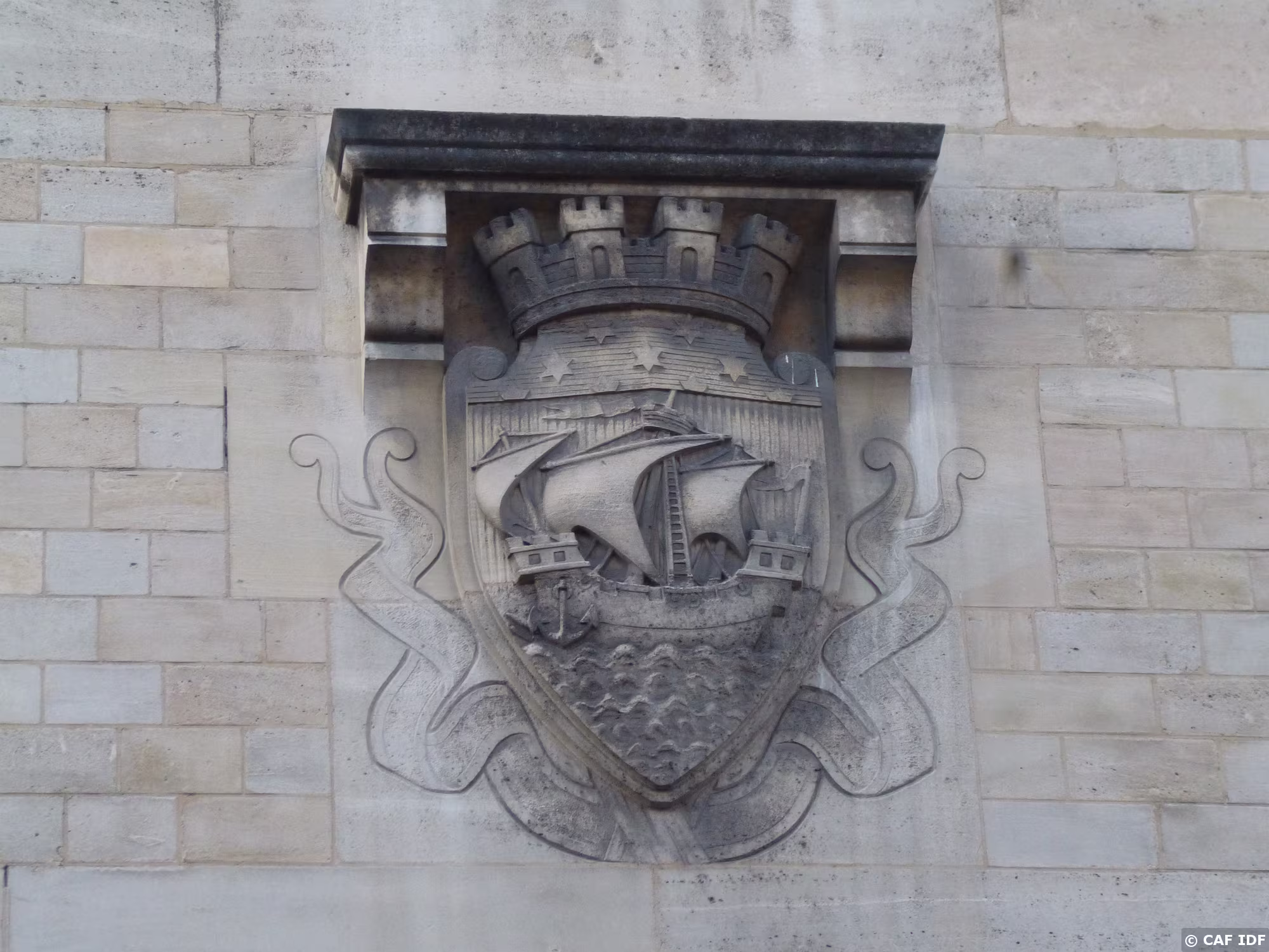 Blason de la ville de Paris sur le mur de l'église.