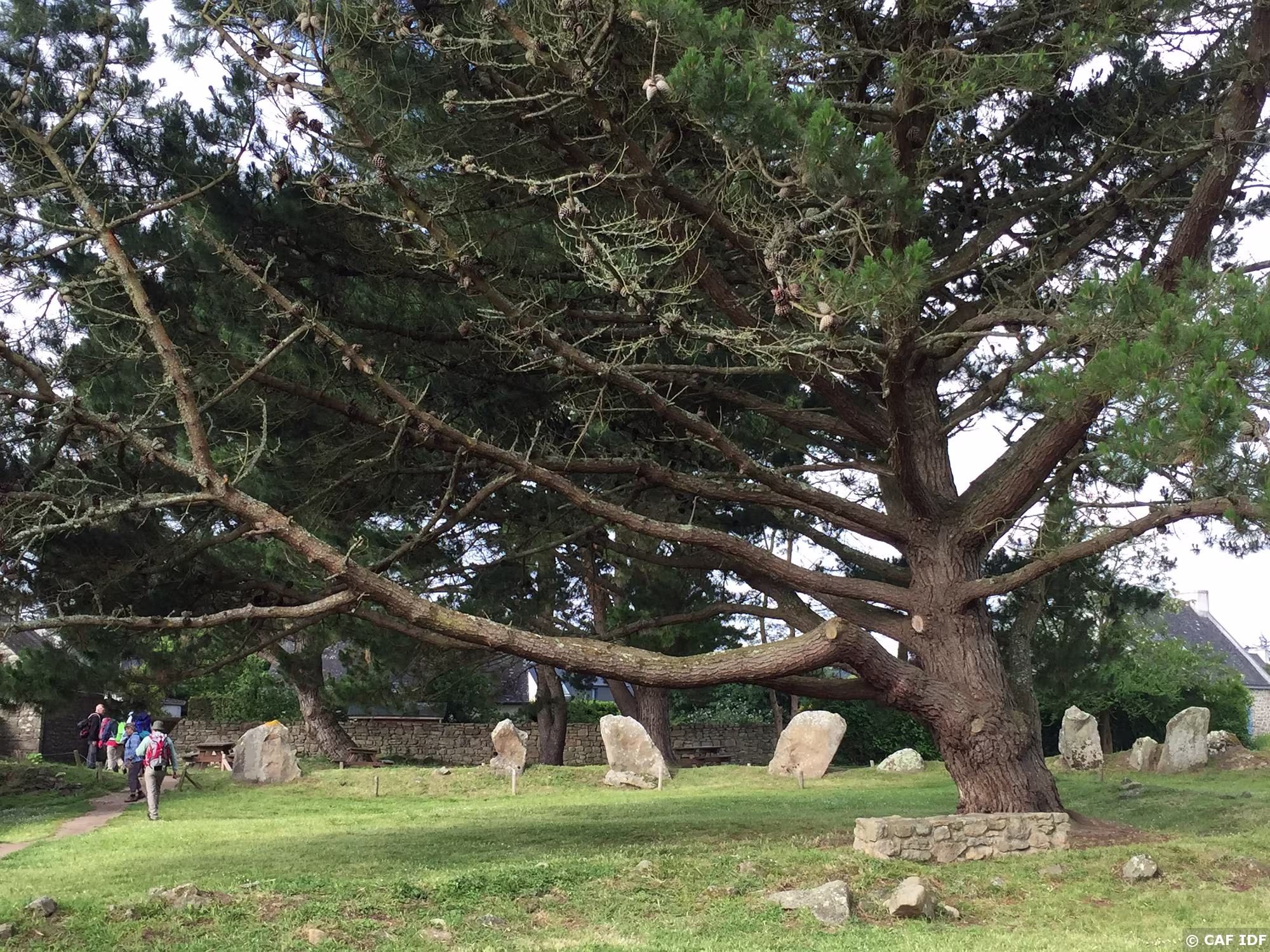 Un arbre impressionnant veille sur l’enceinte mégalithique de Kergonan (Île aux Moines).