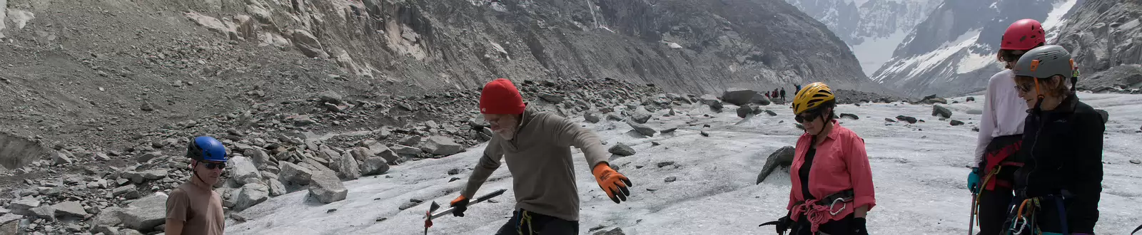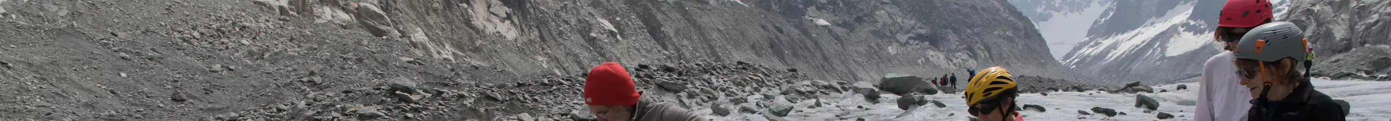 Marche sur la glace sans crampons, il faut regarder où on met les pieds : pas de cailloux, ça glisse ; cailloux trop gros, ça glisse aussi