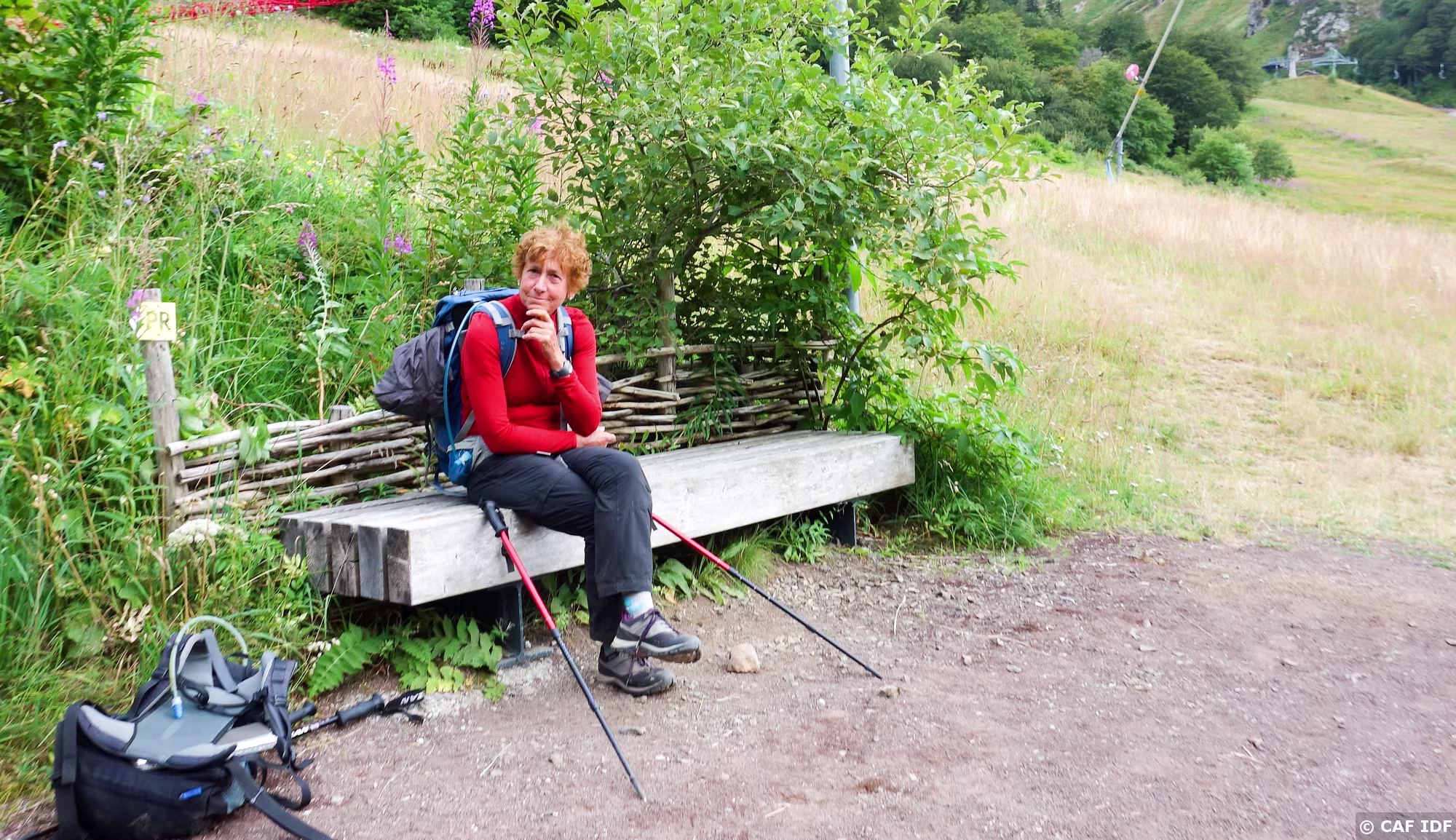 La randonneuse au banc