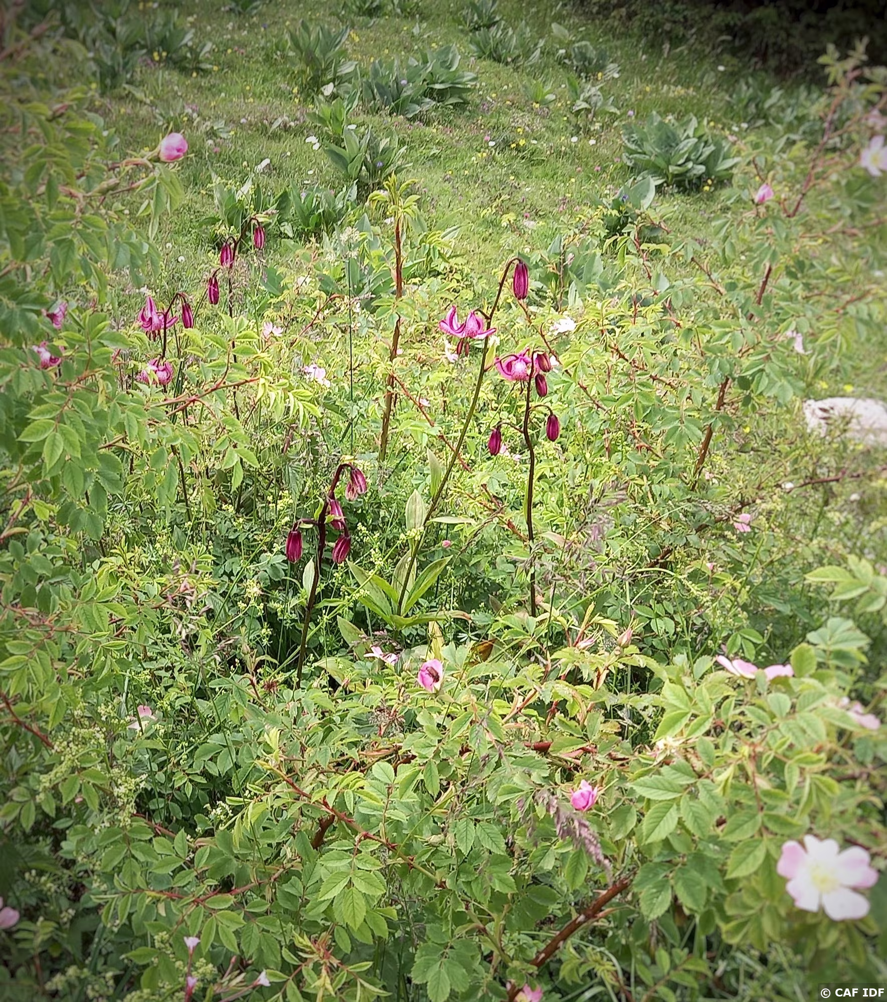 Églantine, lys martagon, gentianes.