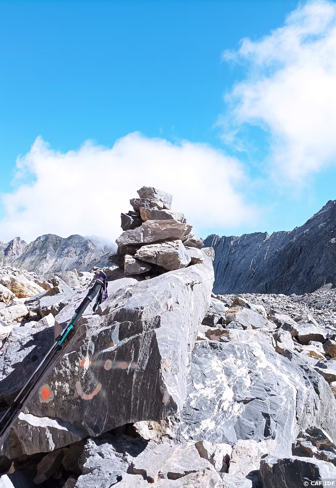 Ce cairn nous guide vers le refuge Péclet Polset