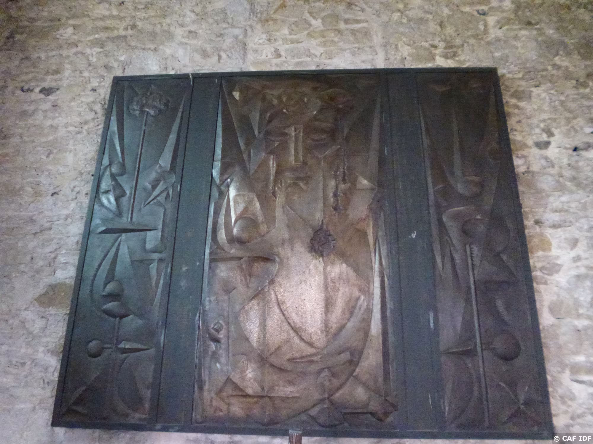 Tableau réalisé en tôle martelée et repoussée, la "Sainte face du Christ" de l'artiste d'origine polonaise Wostan (1915-1989)