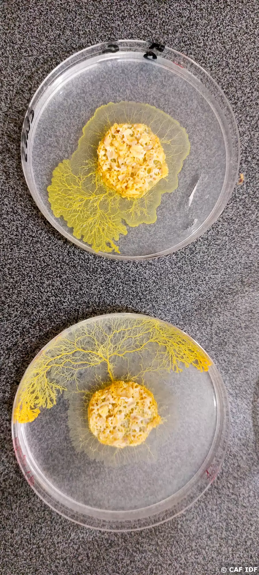 20220518-18h17m27s-20220518_181727-V3 Physarum polycephalum, plus couramment appelé blob, est une espèce unicellulaire de myxomycète de l'ordre des Physarales, vivant dans les milieux frais et...