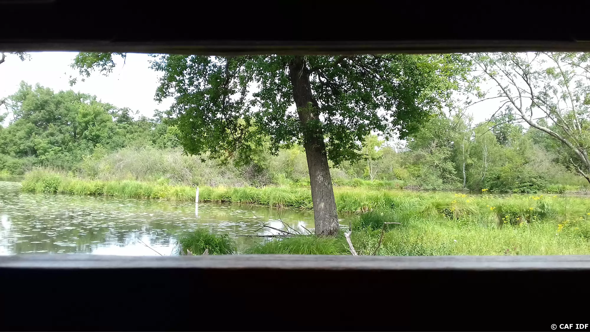 Vue sur l’un des étangs du Domaine départemental du Marais de Fontenay-le-Vicomte depuis l’observatoire de l’Etang aux Moines