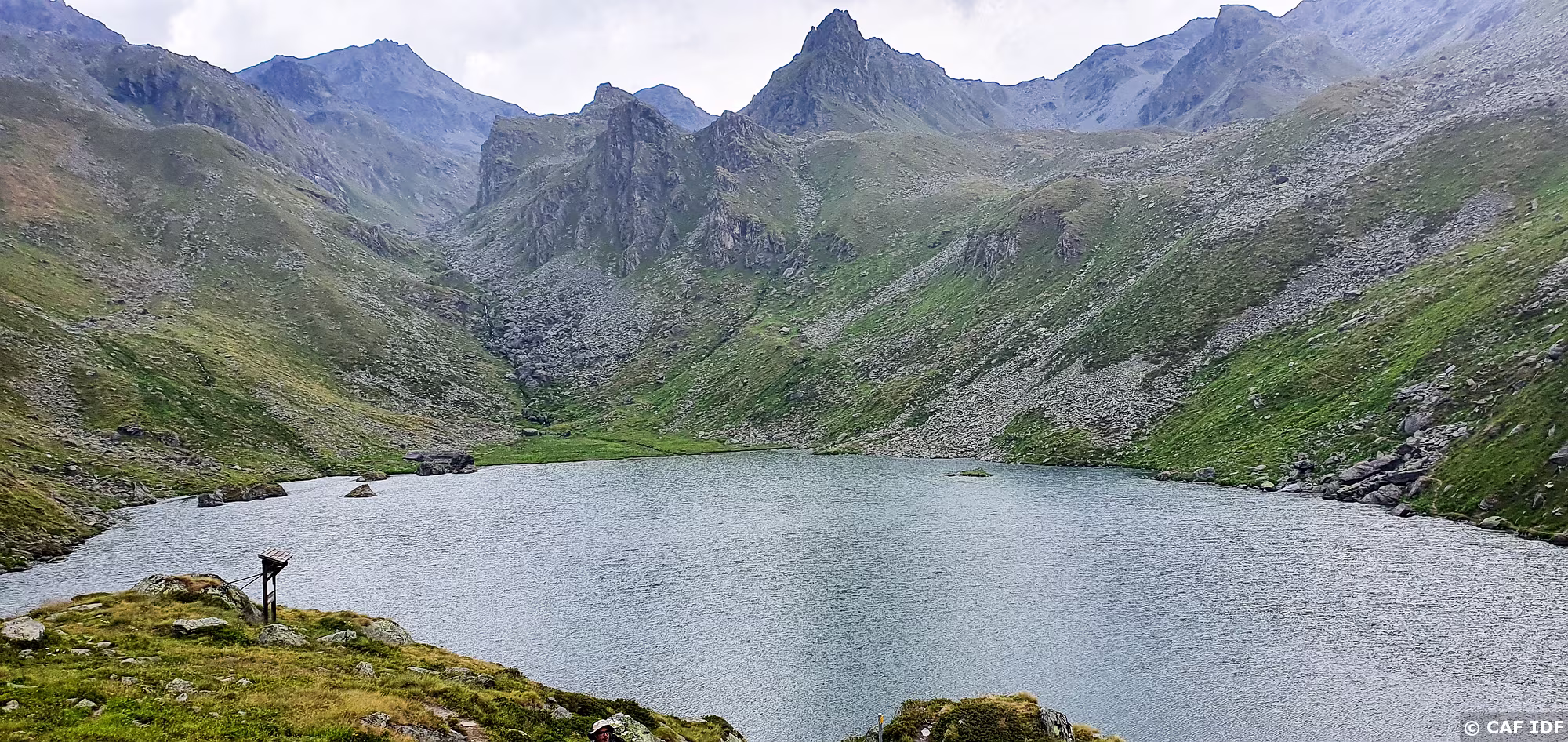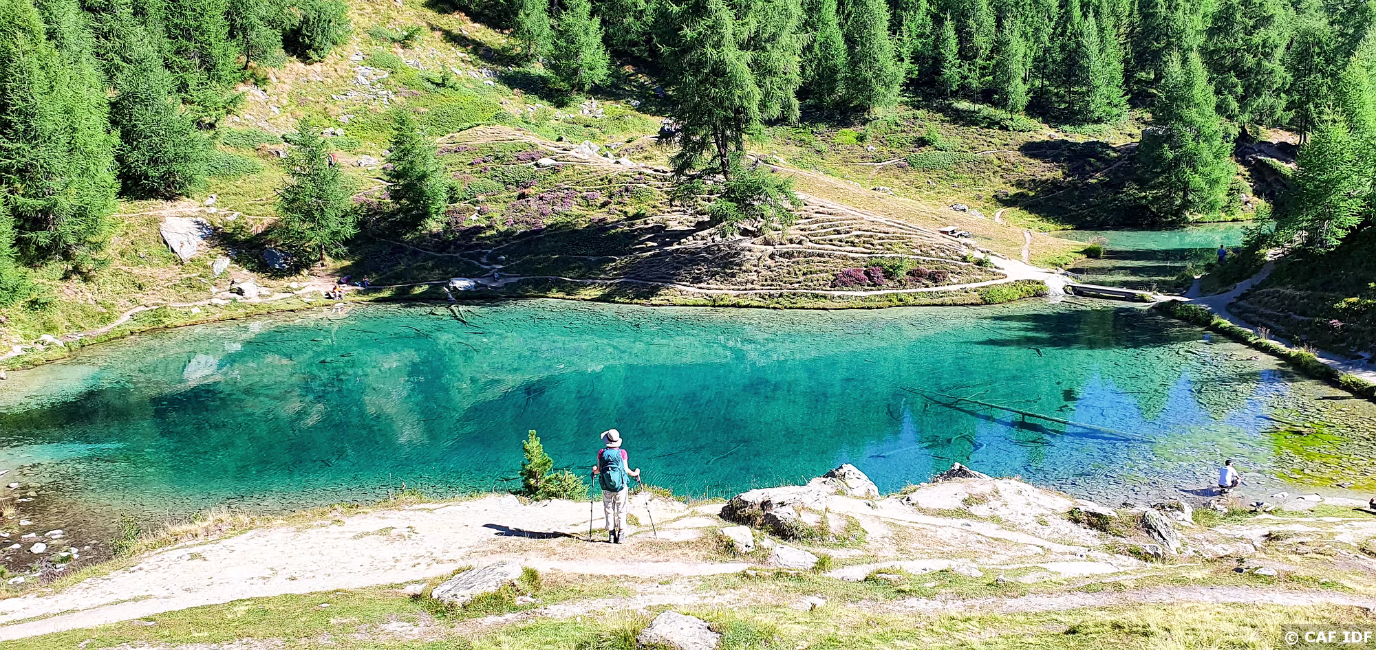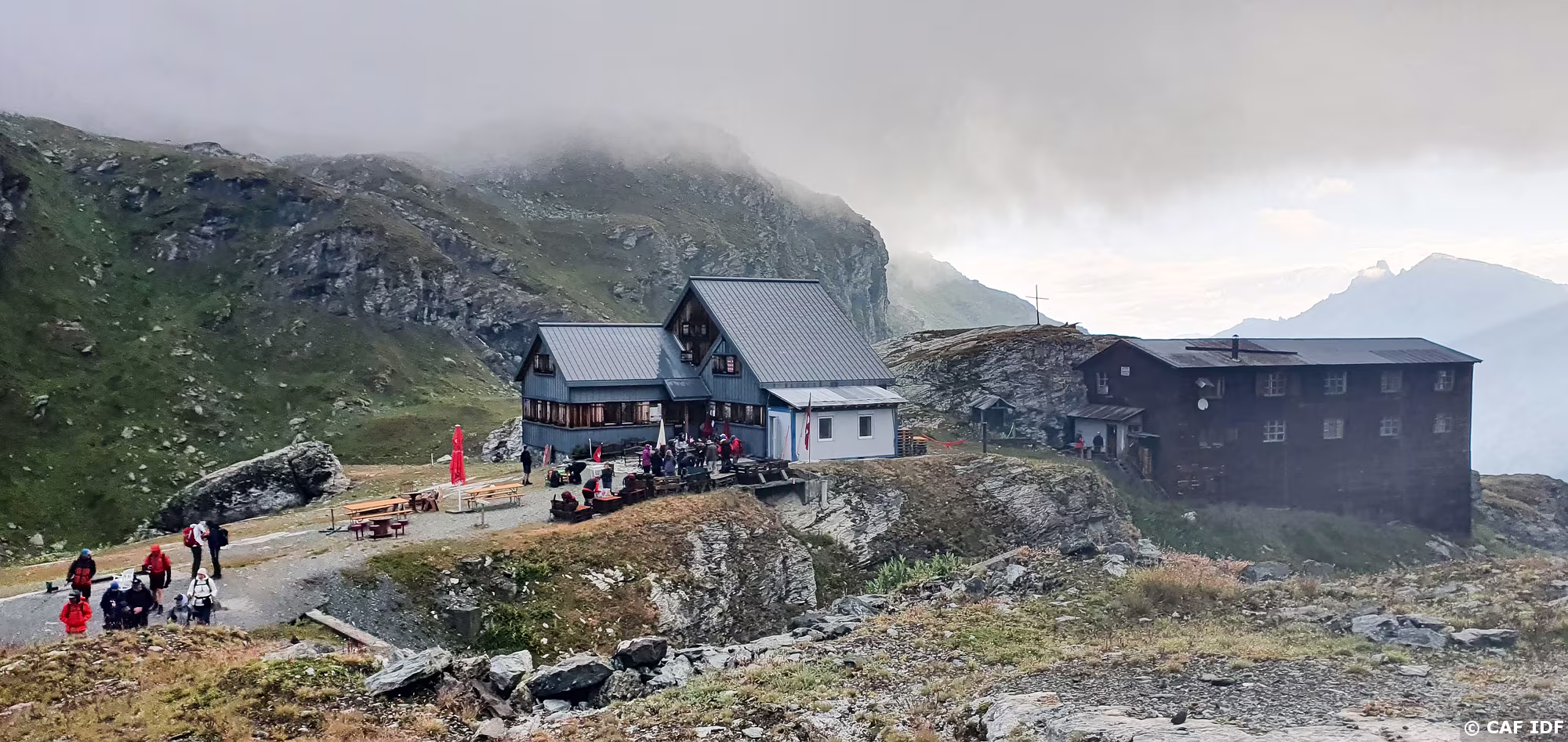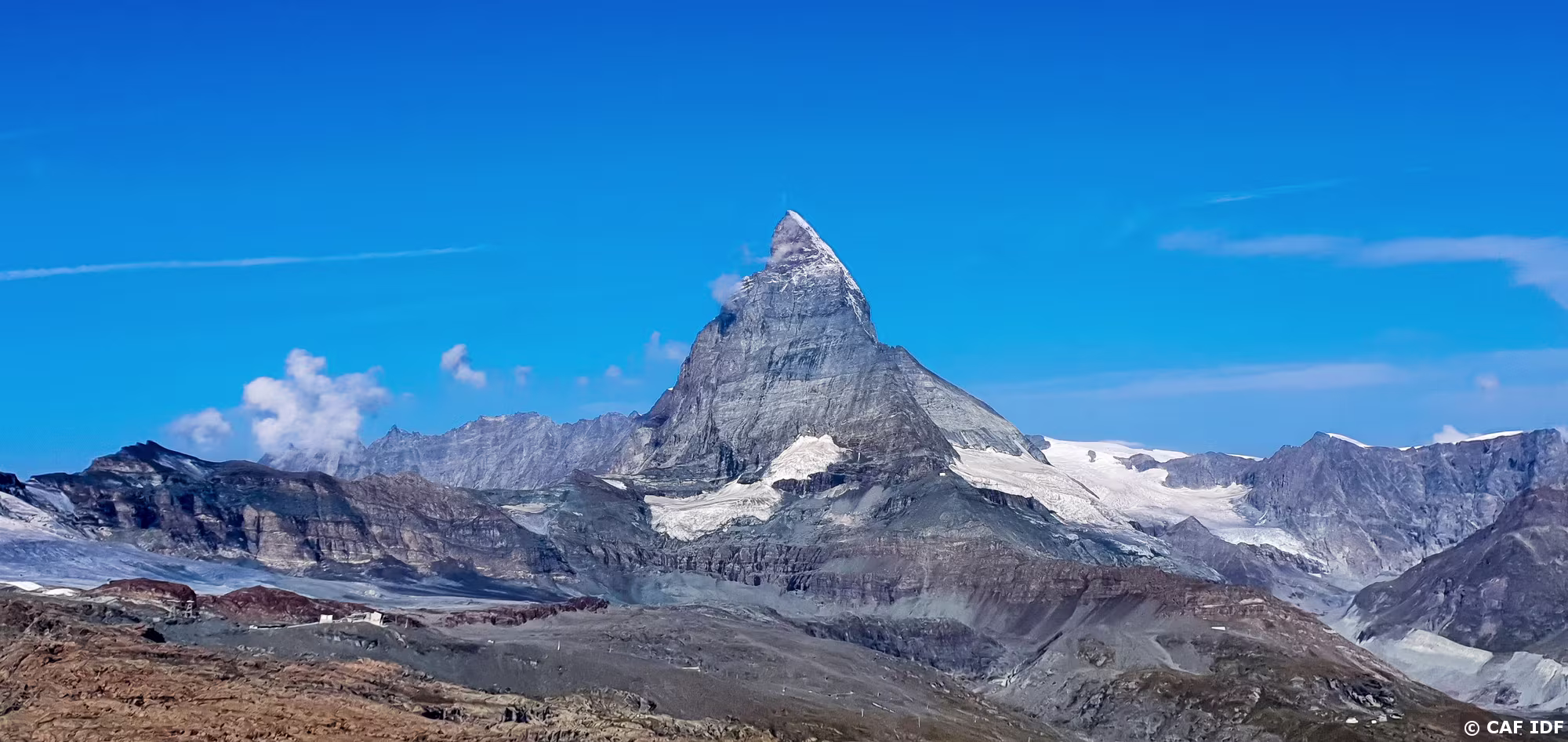 Vue sur le Bishorn (4151m) et le Weisshorn (4505m) avec le Turtmanngletschär, le Brunegggletschär puis le Turtmannsee.
