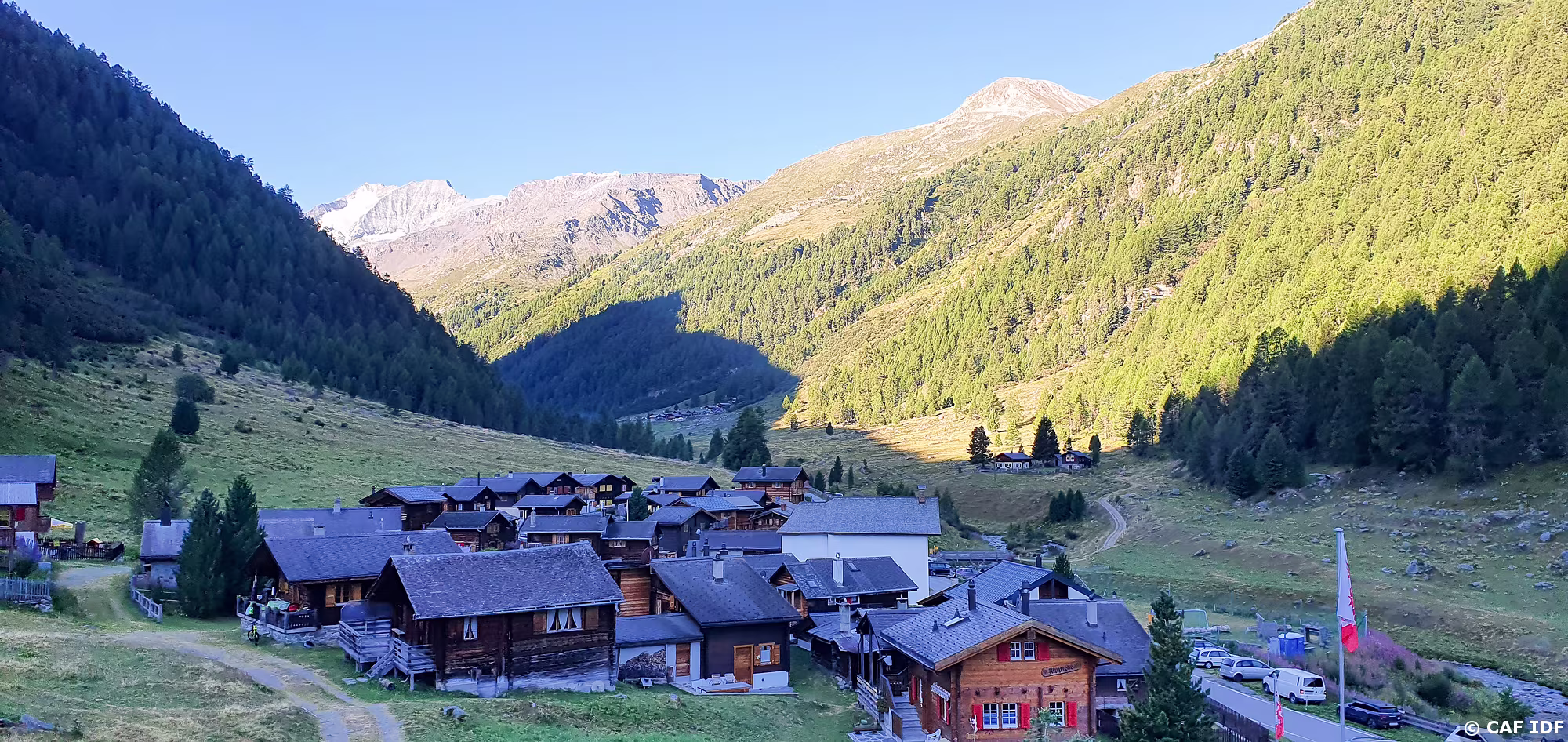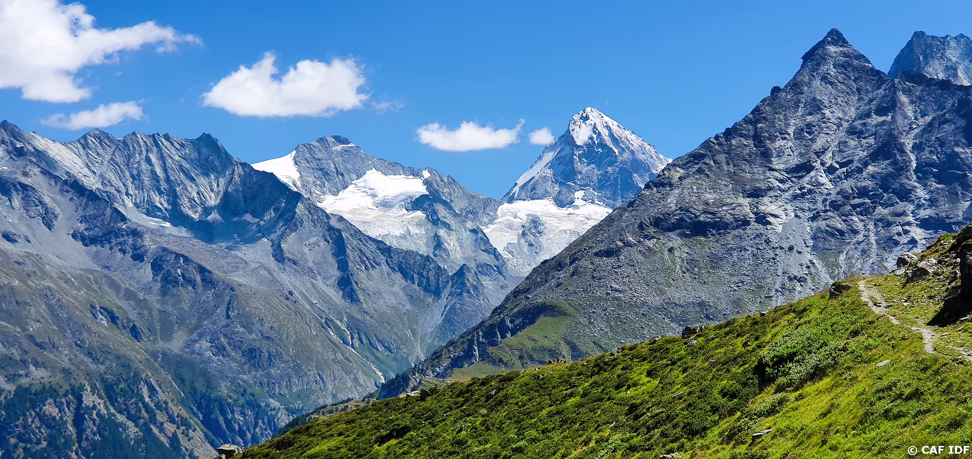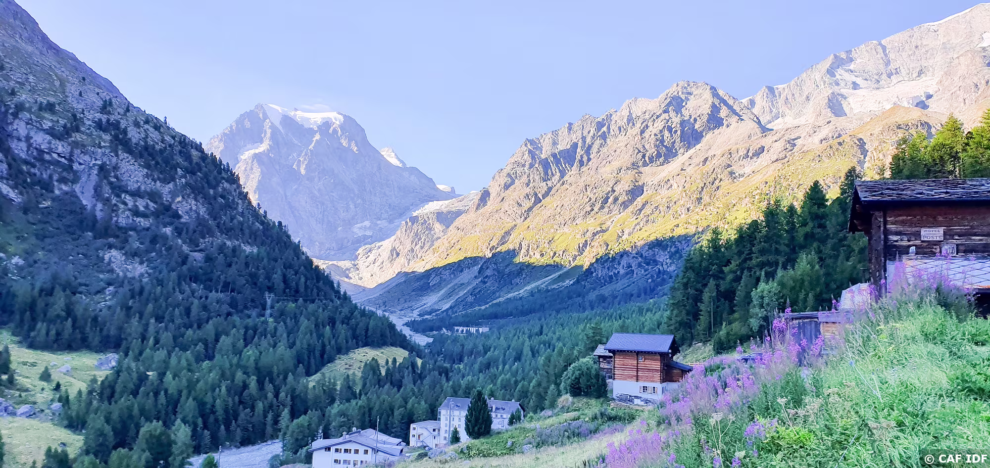 Val de Tourtemagne (Turtmanntal) avec les Rothorn (3259m), Stellihorn (3406 et 3410m), Gässispitz (3411m), Üssers-Barrhorn (3610m) et Inners Barrhorn (3583m).