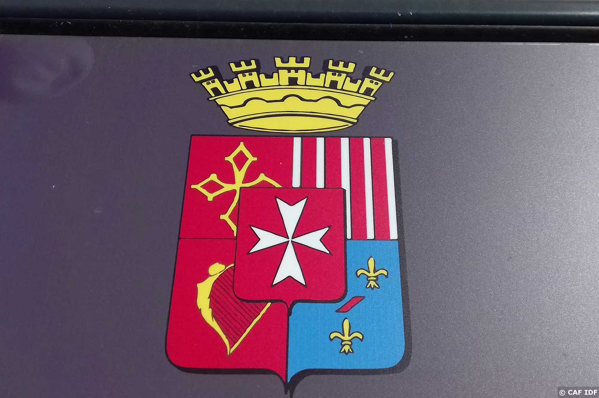 Le blason de la ville reprend celui de Louis VI d’Arpajon, lieutenant général des armées du roi, descendant d’une grande famille du Rouergue (d’où la croix de…